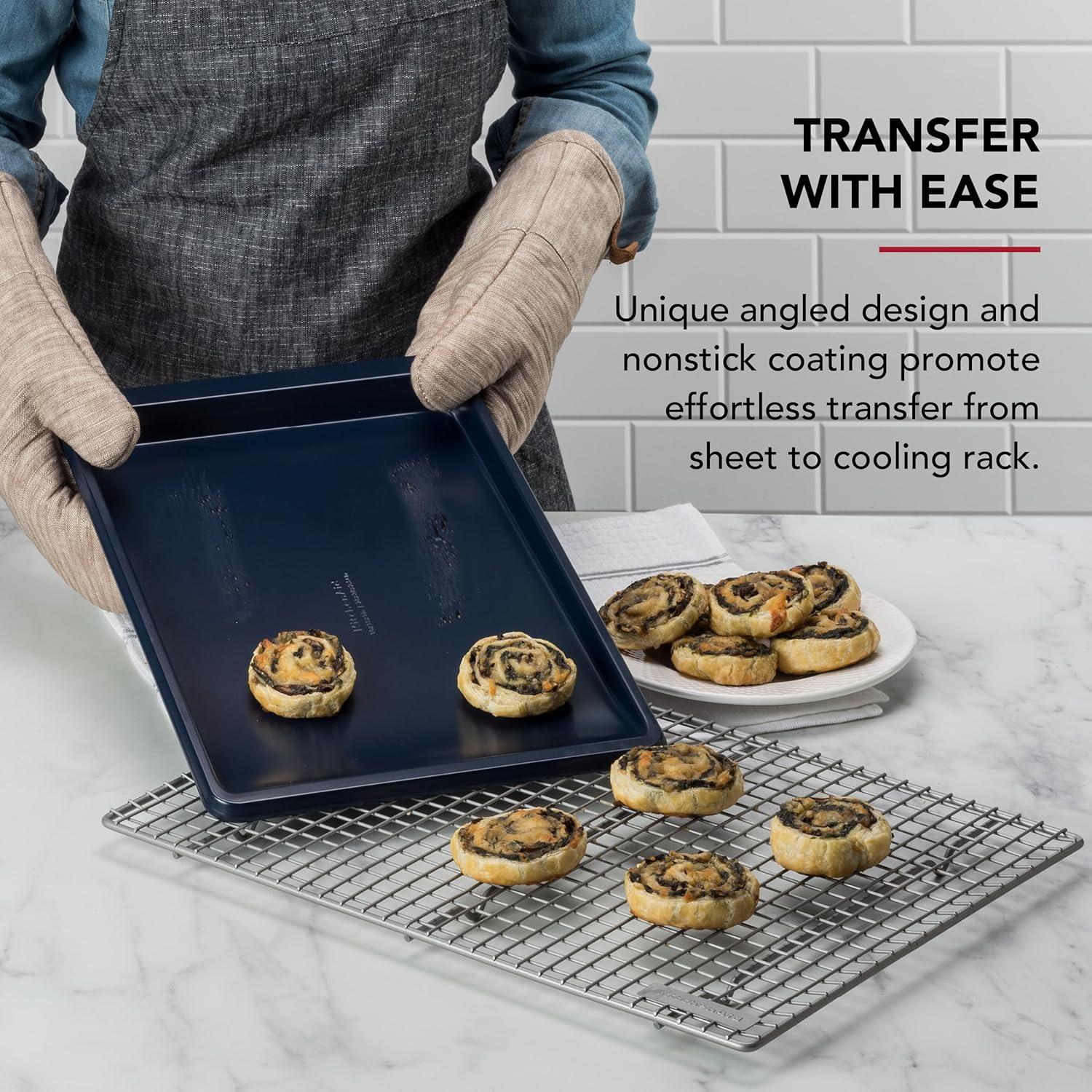 TRANSFER WITH EASE: Unique angled design and nonstick coating promote effortless transfer from sheet to cooling rack