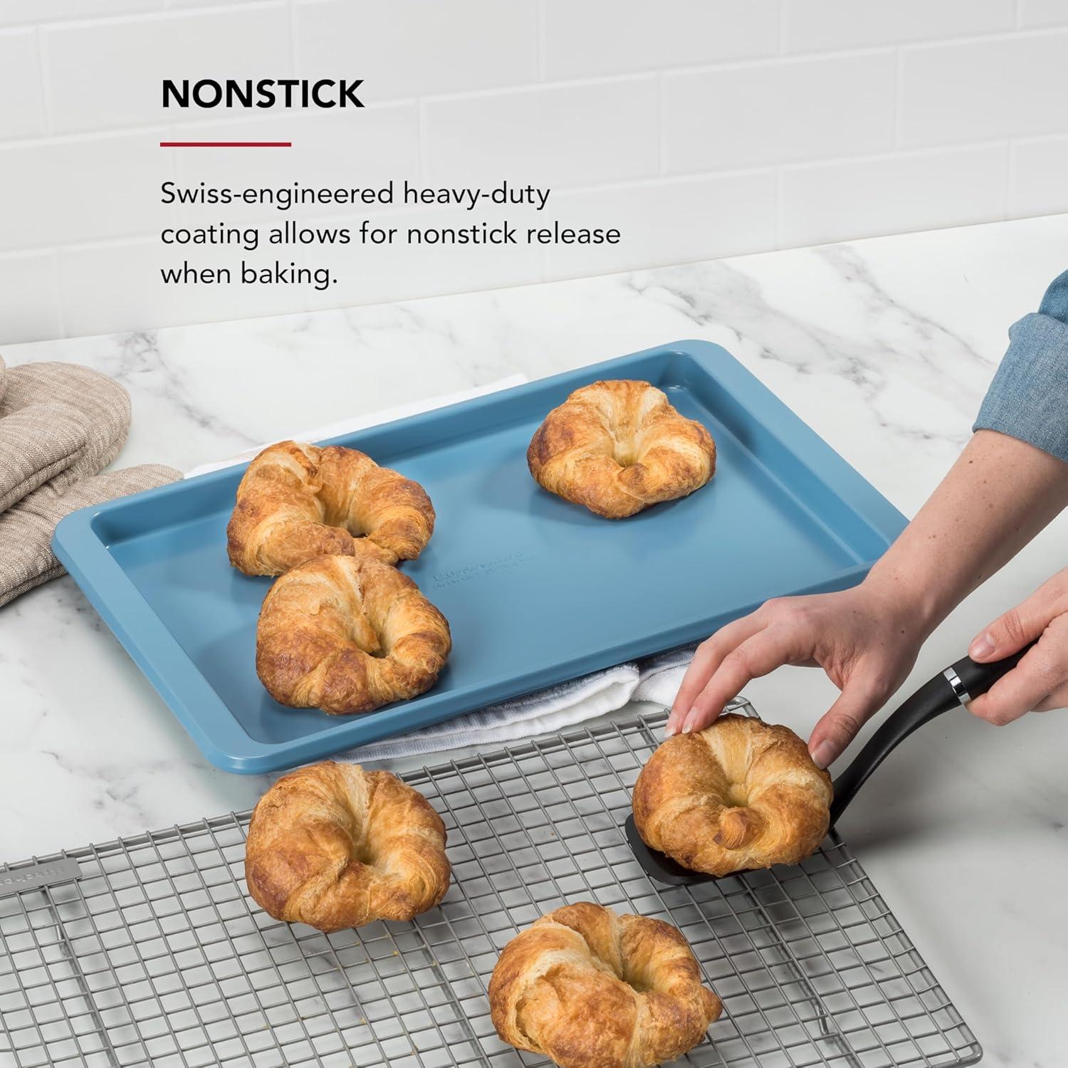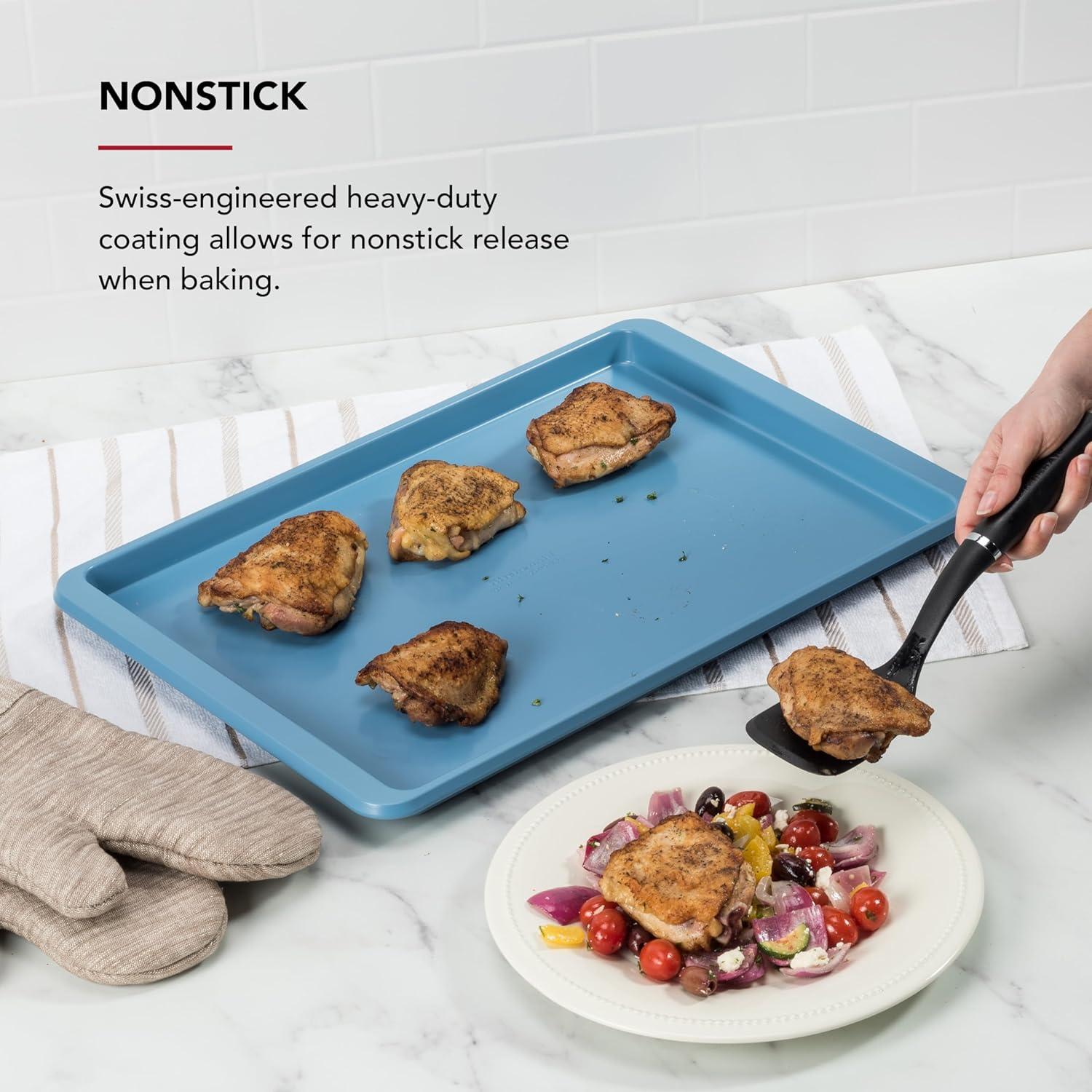 EVEN BAKING: Aluminized steel construction promotes consistent heat distribution across the pan, allowing for evenly baked desserts and perfectly roasted dishes