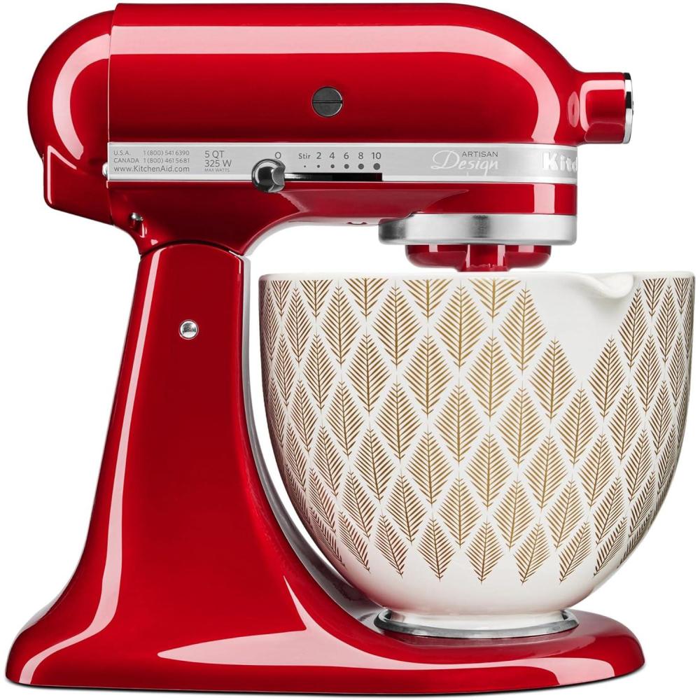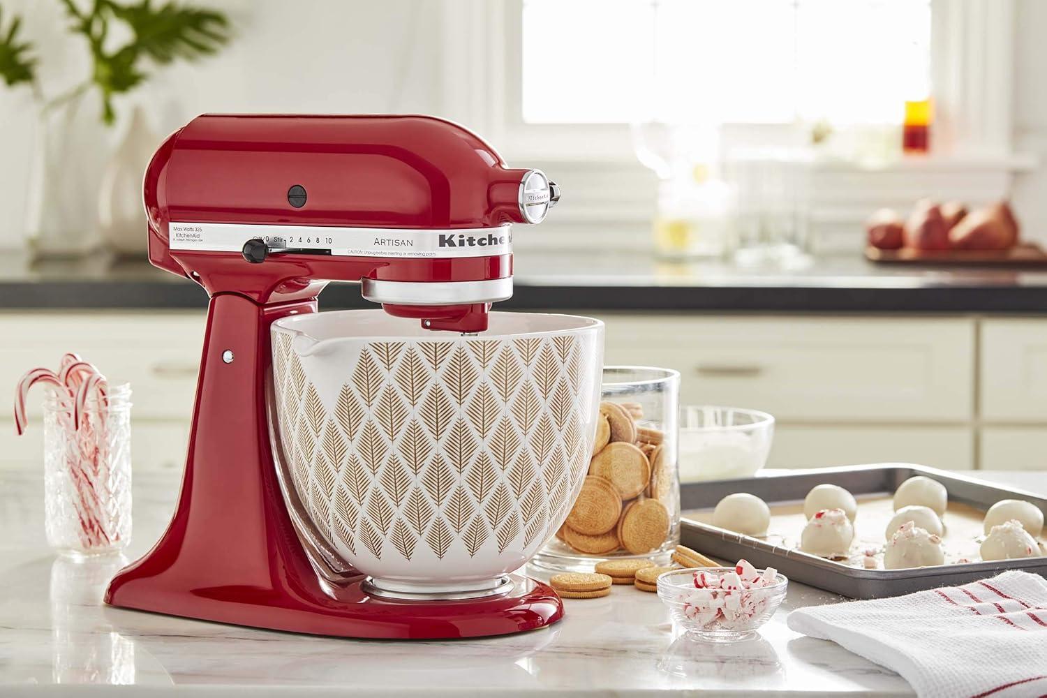 Who says making beautiful dishes and meals has to be all form and function? Get inspired to make even more when you accessorize your stand mixer with this beautiful 5 Quart Gold Conifer Ceramic Bowl – with gold pine trees arranged in a diamond shape pattern to evoke the thrill of the holidays. This strong-yet-beautiful ceramic bowl is freezer, microwave, dishwasher and oven-safe up to 475 degrees, and made with durable ceramic to resist chipping, cracking, crazing and staining. Fits all 4.5- and 5-quart KitchenAid® Tilt-Head Stand Mixers, sold separately.
