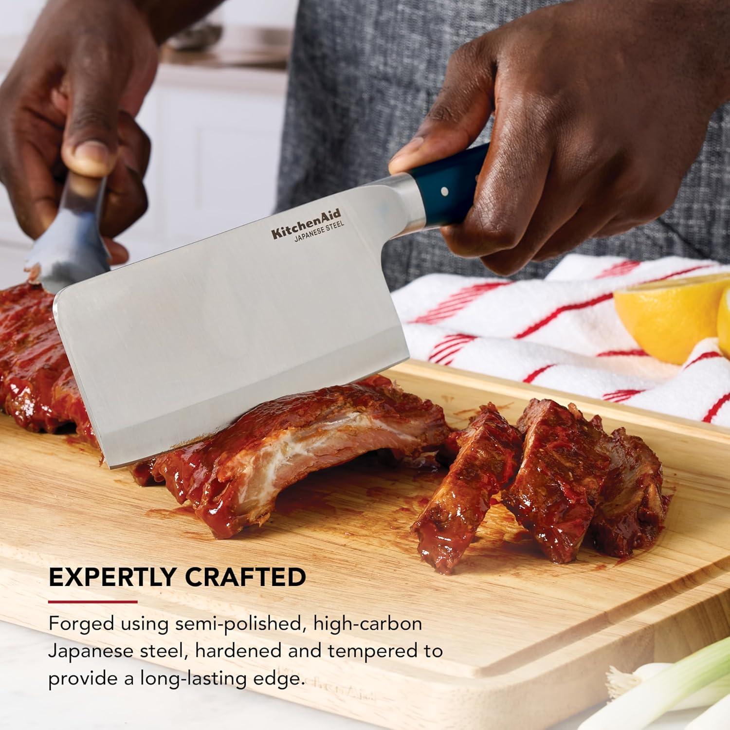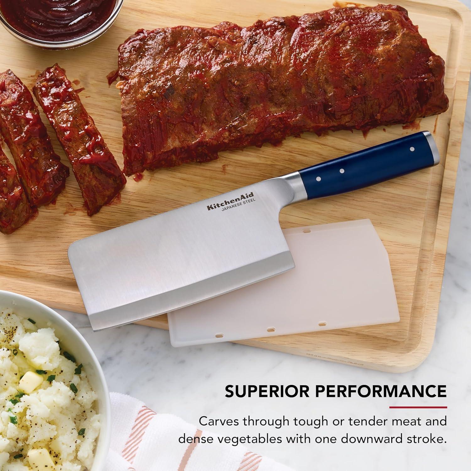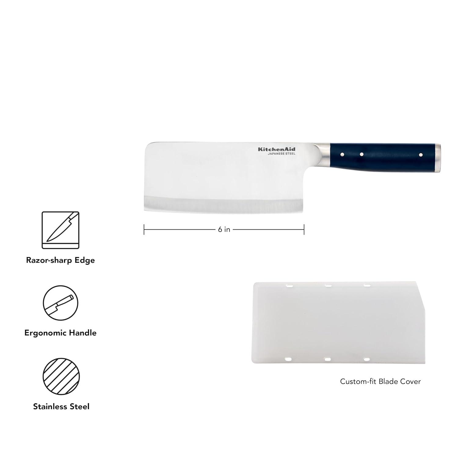 KitchenAid 6 Inch Forged Cleaver, High Carbon Japanese Steel, Eastern Style Ergonomic Handle with Blade Cover, Ink Blue(Ink Blue)