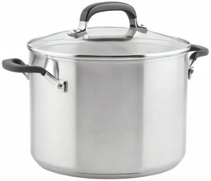 KitchenAid 71022 Stainless Steel Stockpot with Measuring Marks and Lid, 8 Quart – Brushed Stainless Steel