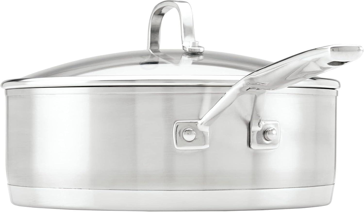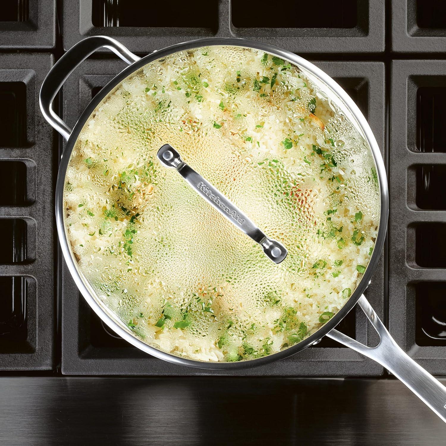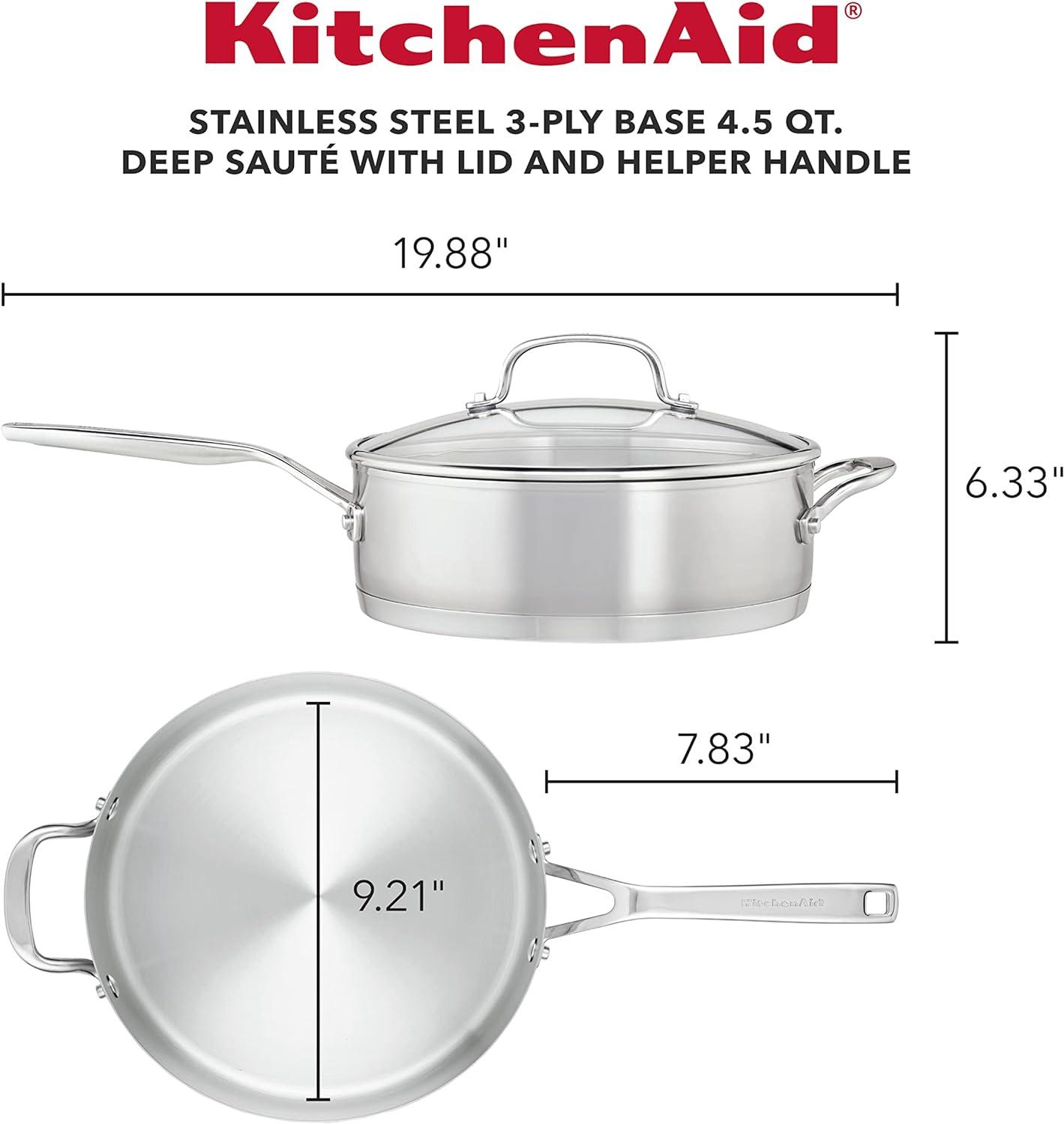KitchenAid 71027 3-Ply Base Brushed Stainless Steel Deep Saute Pan with Helper Handle and Lid, 4.5 Quart – Brushed Stainless Steel