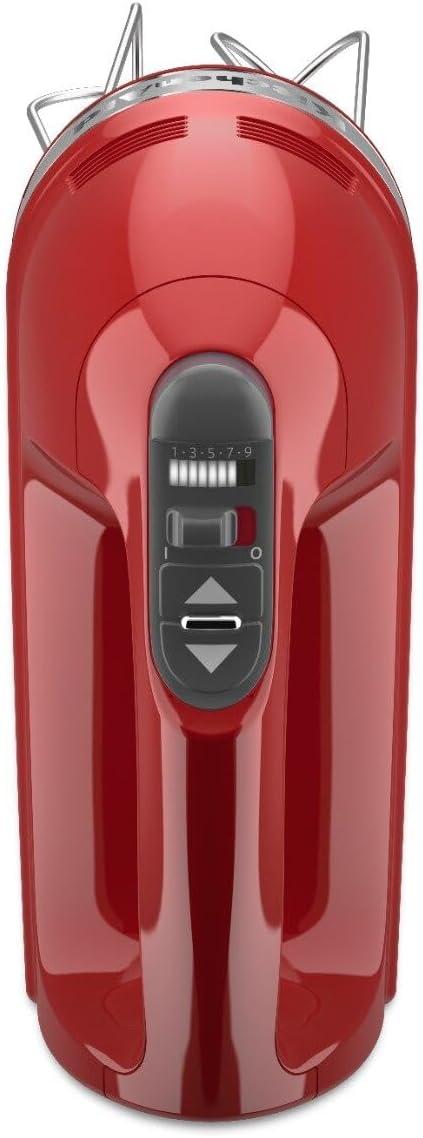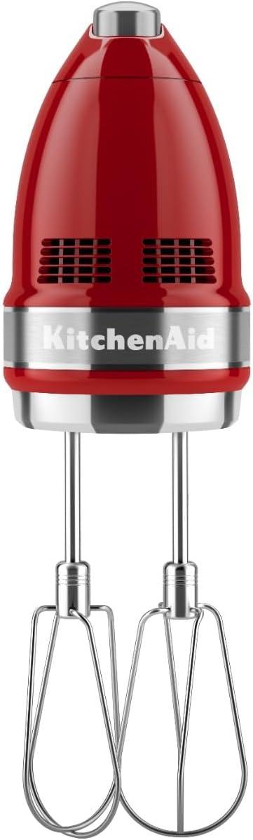 KitchenAid 9-Speed Digital Hand Mixer with Turbo Beater II Accessories and Pro Whisk – Contour Silver(Empire Red)