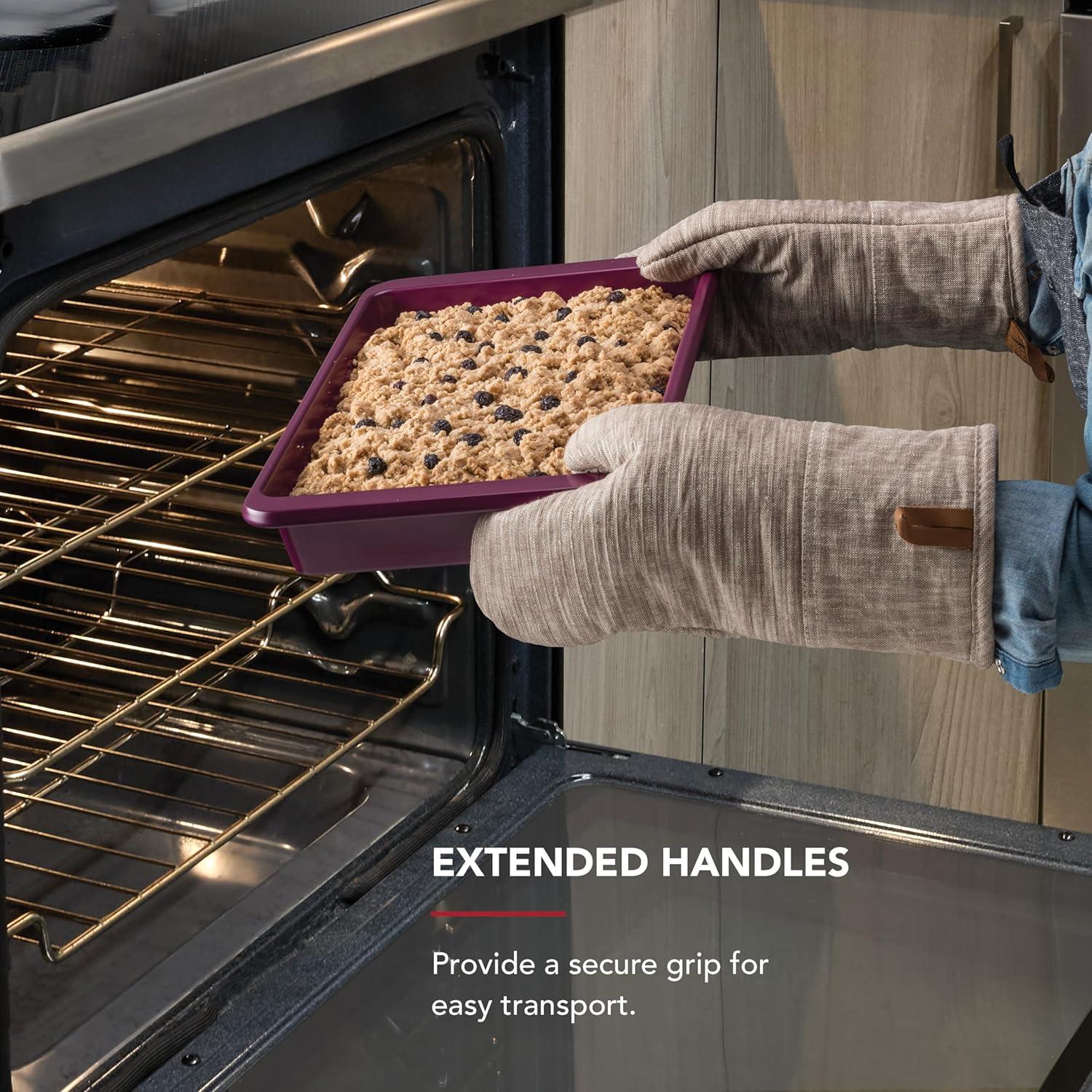 EXTENDED HANDLES: provide a secure grip for easy transport, making transferring pan in and out of the oven safer and simpler, even when wearing pot holders