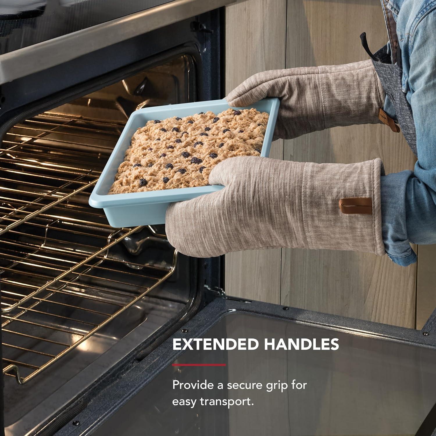 EXTENDED HANDLES: provide a secure grip for easy transport, making transferring pan in and out of the oven safer and simpler, even when wearing pot holders