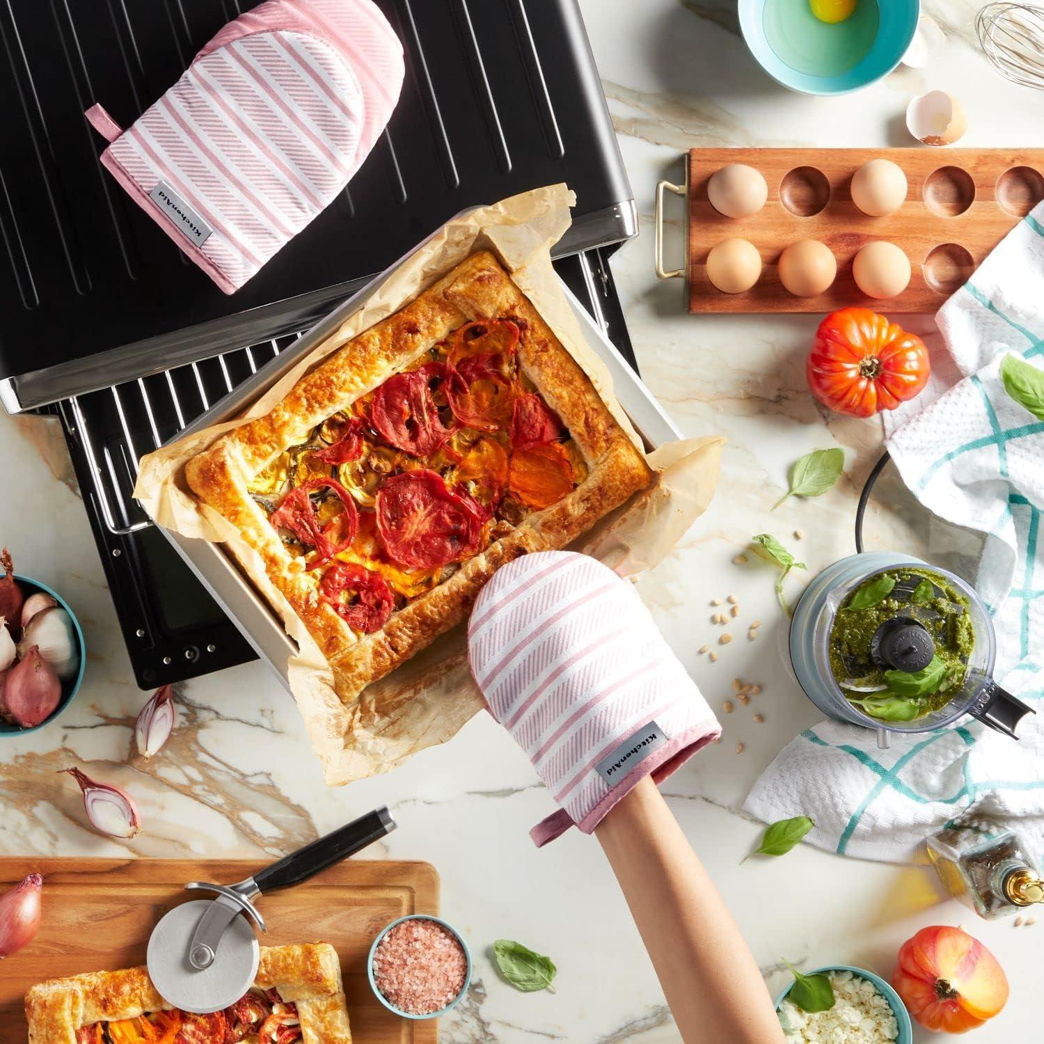 SET OF TWO: This set includes two (2) KitchenAid Albany Mini Mitts, each measuring 5.5″ W x 8″ L.
