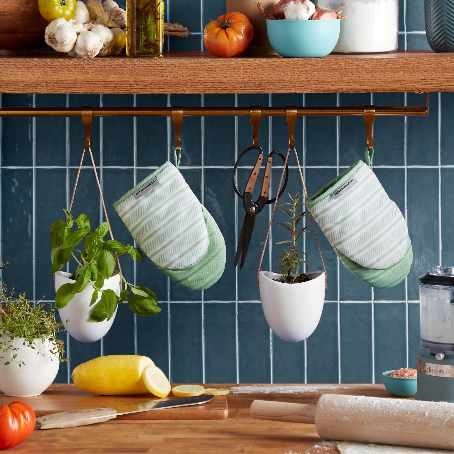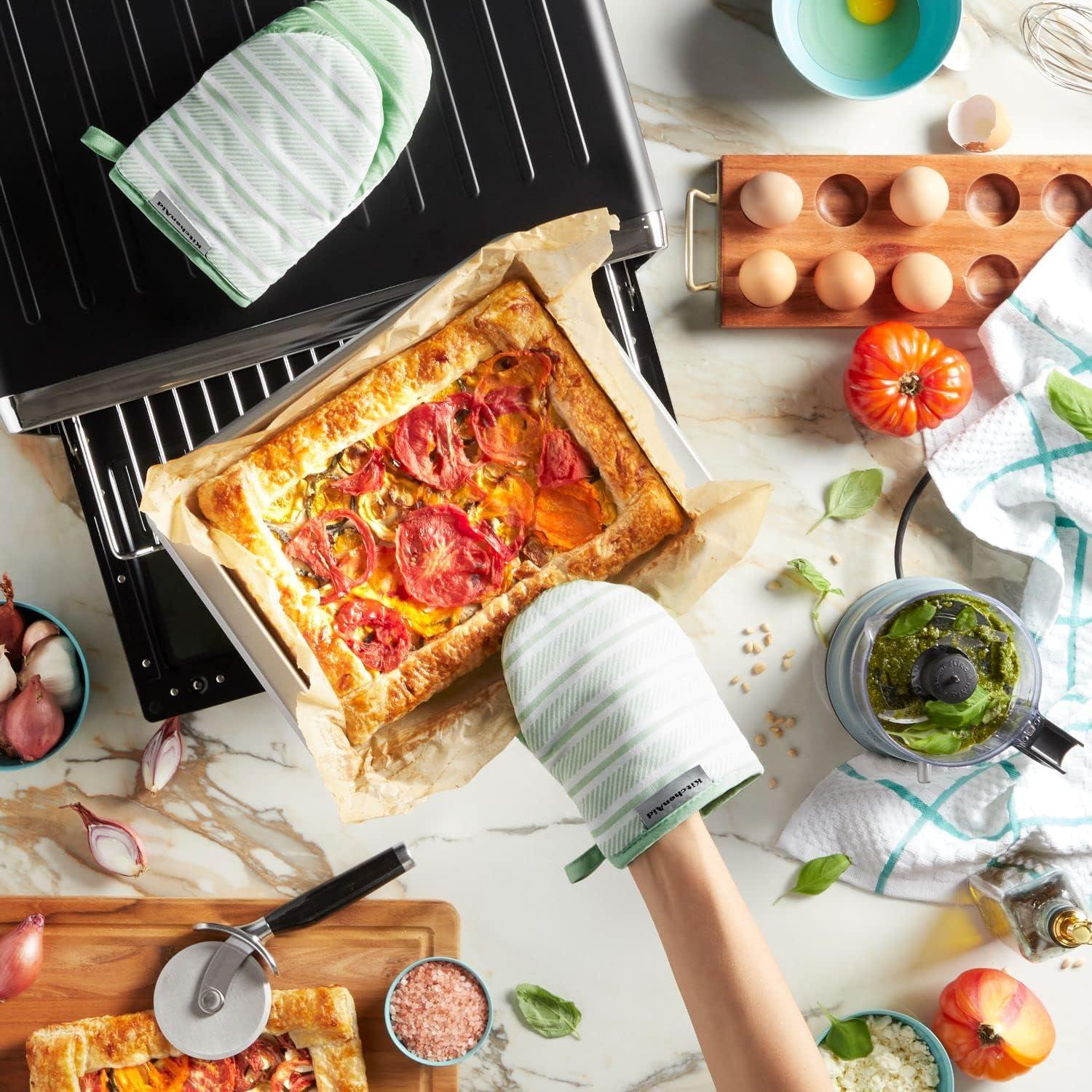 SET OF TWO: This set includes two (2) KitchenAid Albany Mini Mitts, each measuring 5.5″ W x 8″ L.