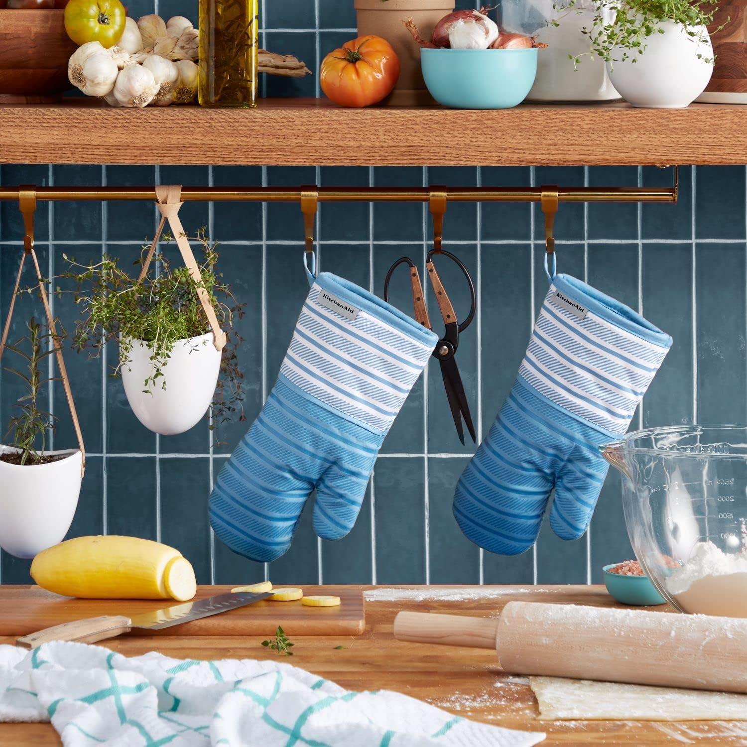 KitchenAid Albany Oven Mitt 2-Pack Set, Aqua Sky, 7″x13″(Blue Velvet)