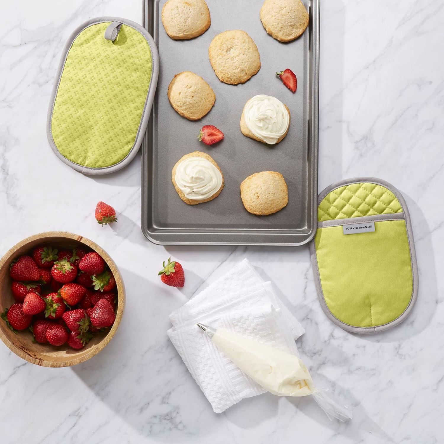 SET OF TWO – Protect both hands while handling hot pots and pans. Set includes two (2) Kitchen Aid Asteroid Pot Holders, 6. 5″ W x 10″ L.