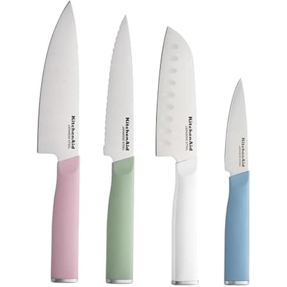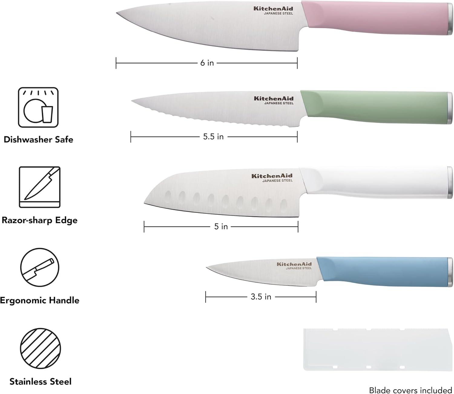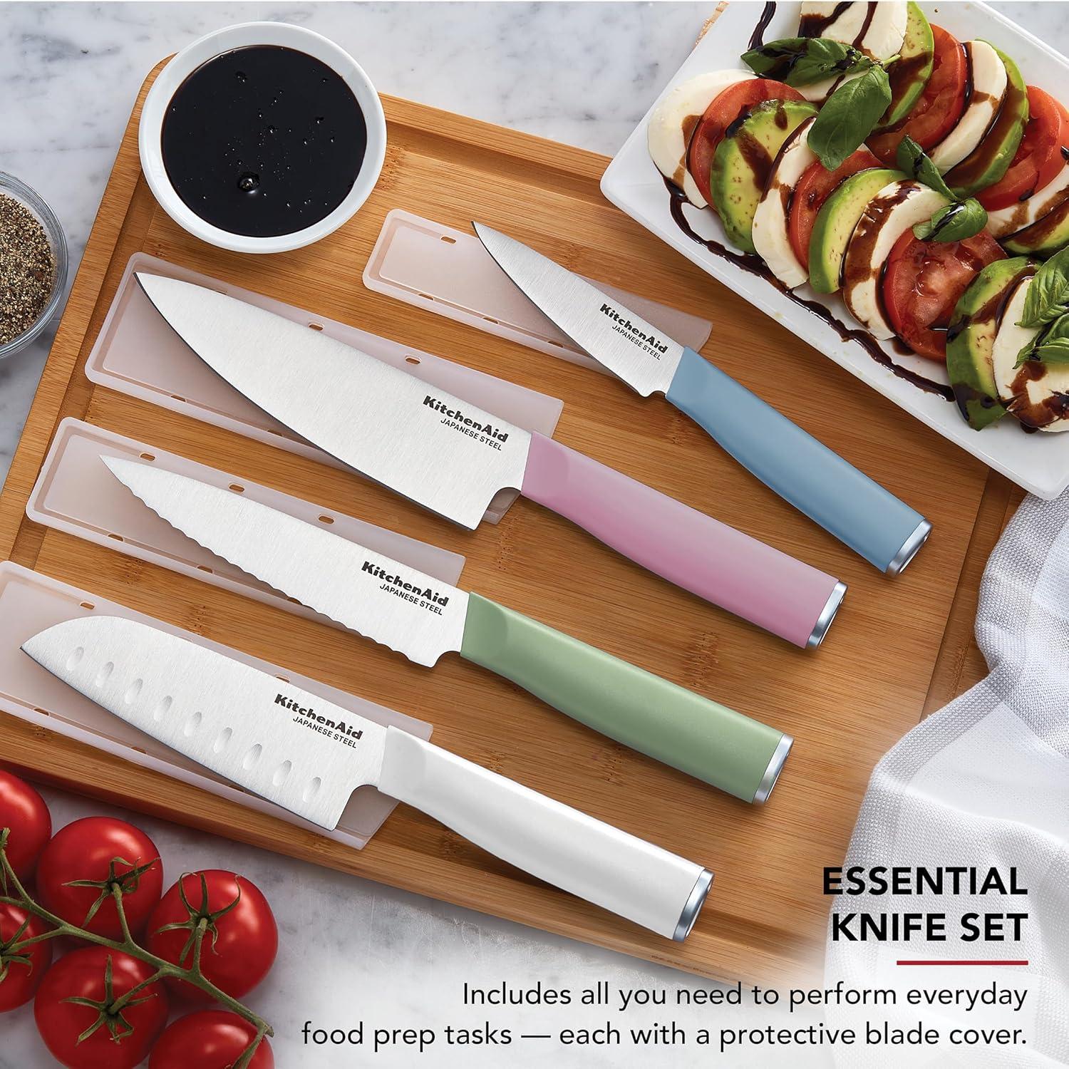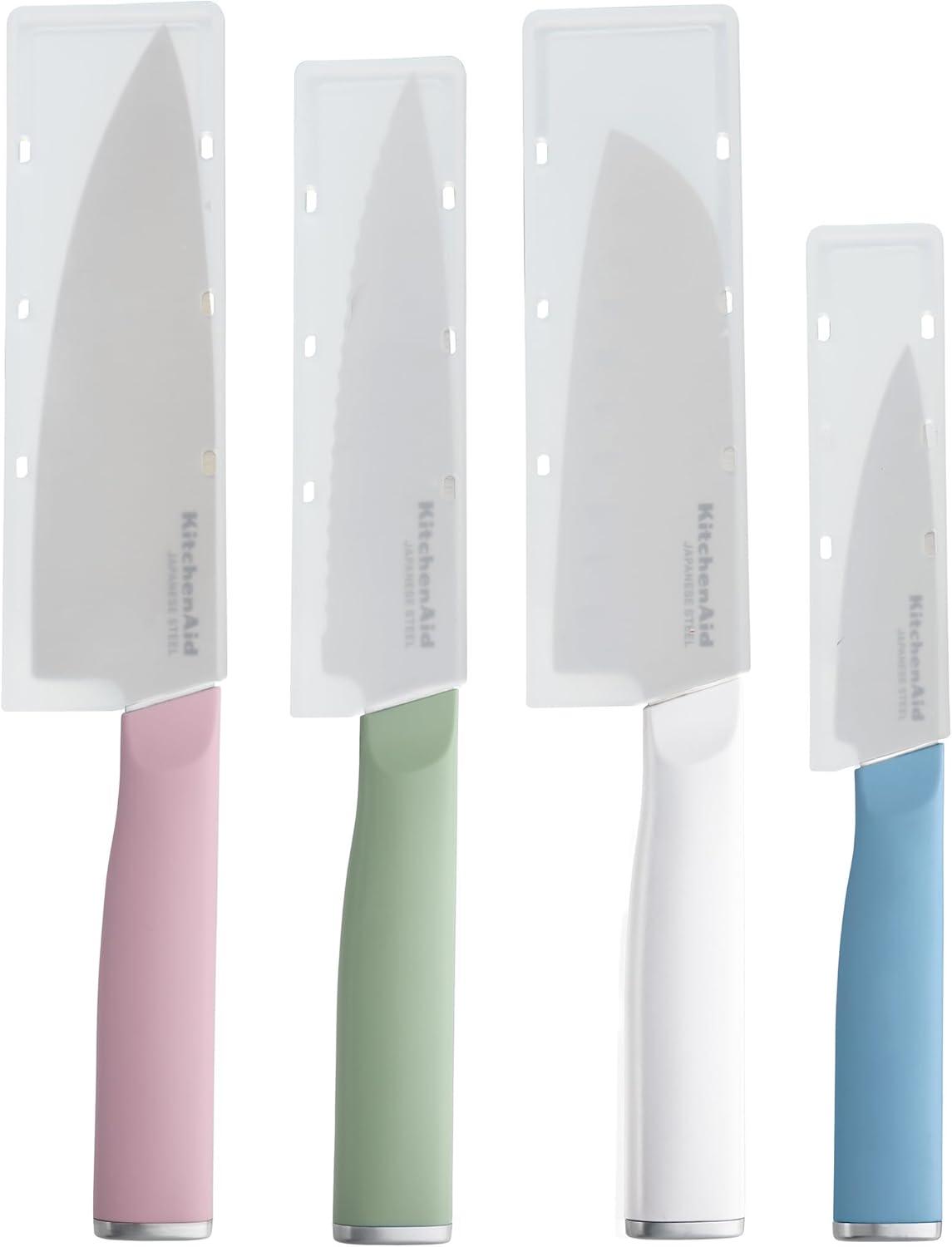 KitchenAid Chef Set with Custom-Fit Covers, Sharp Kitchen Knife, High-Carbon Japanese Stainless Steel Blade, 4 Piece, Multicolor(Assorted)