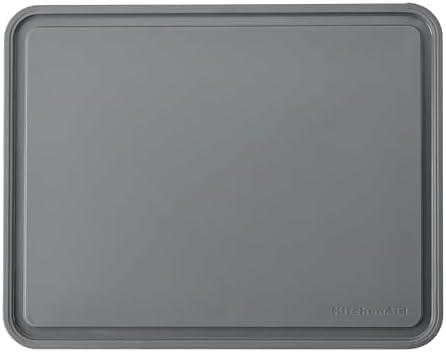 This KitchenAid Classic 8×10 plastic cutting board is the ideal size for everyday food prep tasks. This nonslip cutting board is expertly designed to provide an exceptional experience, whether for cutting, slicing, dicing, mincing, or chopping. This plastic cutting board is designed with nonslip edges for stability and control. Made and engineered to maintain shape over time, this board is gentle on knives for long-lasting durability. This cutting board features a perimeter trench to collect excess liquids and is dishwasher safe for easy cleanup.