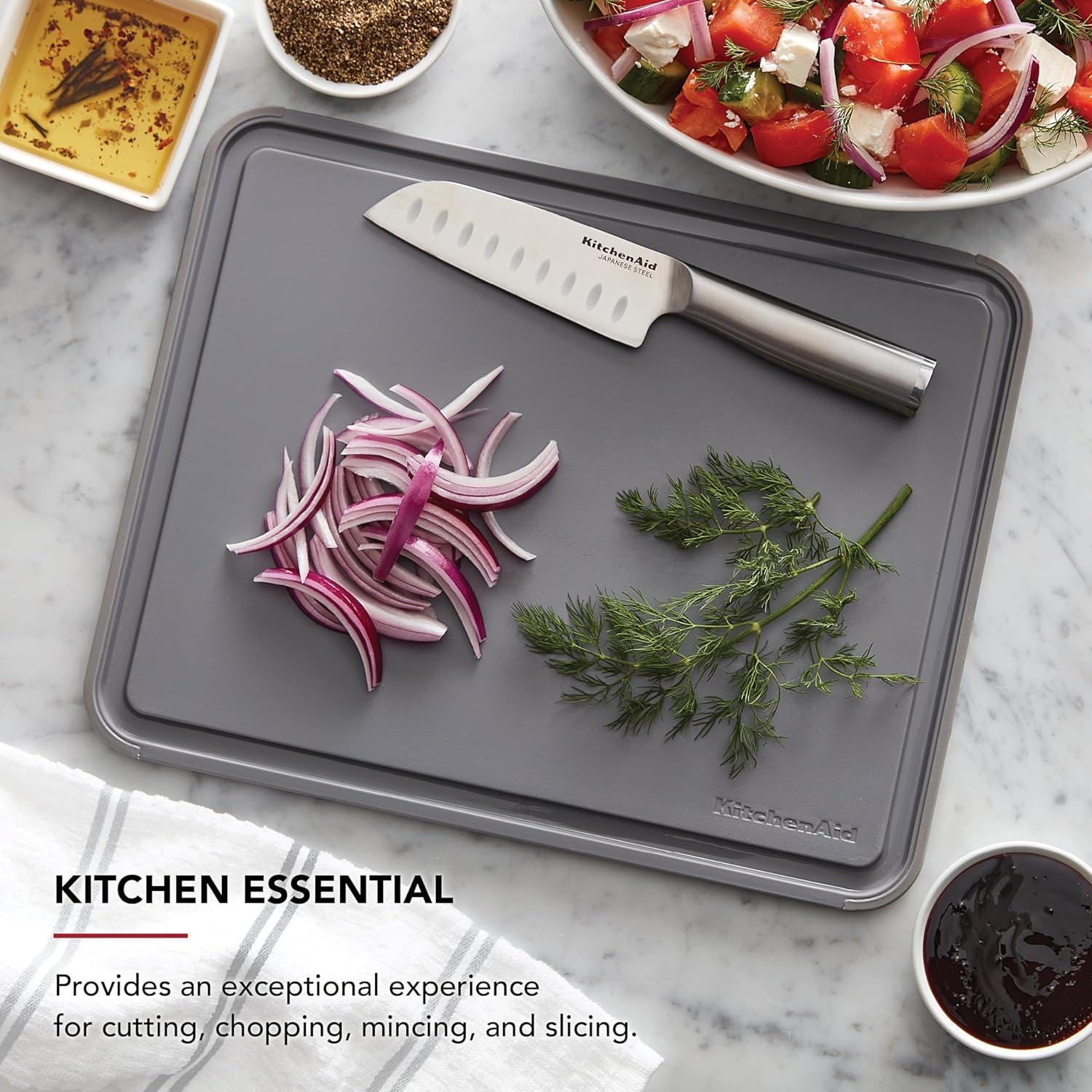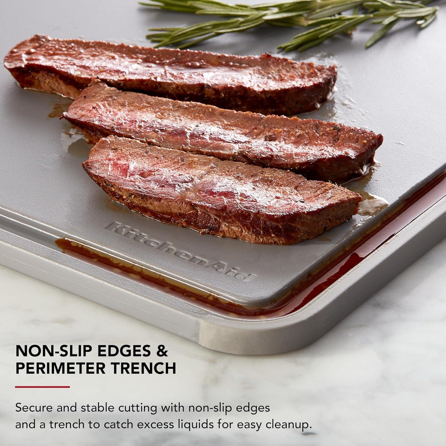 NON-SLIP EDGES & PERIMETER TRENCH: This KitchenAid cutting board offers a secure base for all your culinary tasks, featuring non-slip edges and a perimeter trench for added safety and convenience.