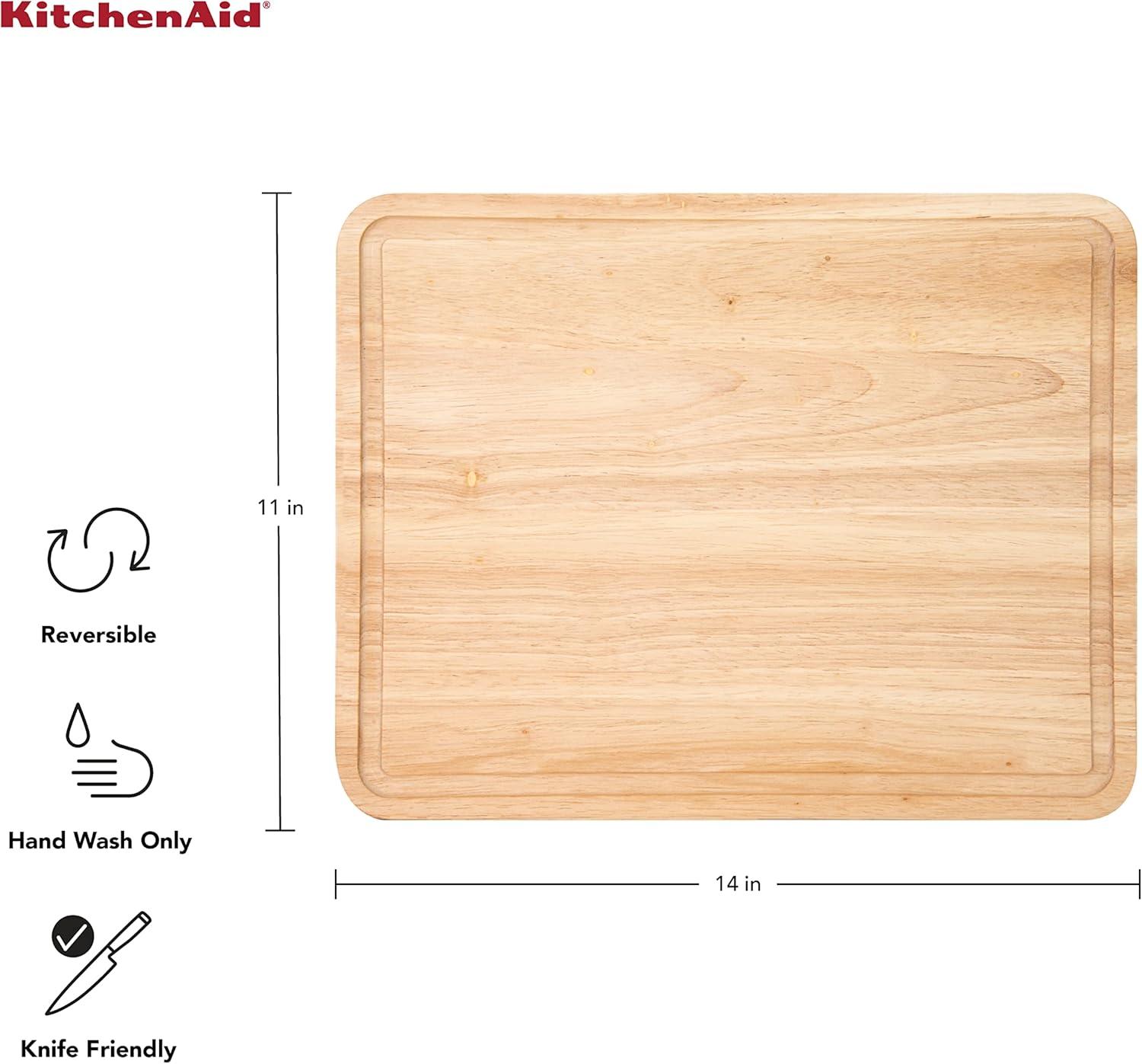 KitchenAid Classic Rubberwood Cutting Board with Perimeter Trench, Reversible Chopping Board, 11-inch x 14-Inch, Natural(14″L x 11″W)