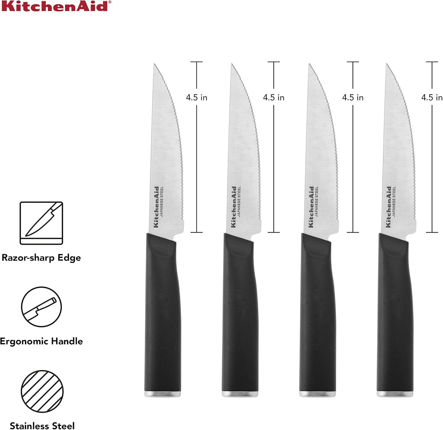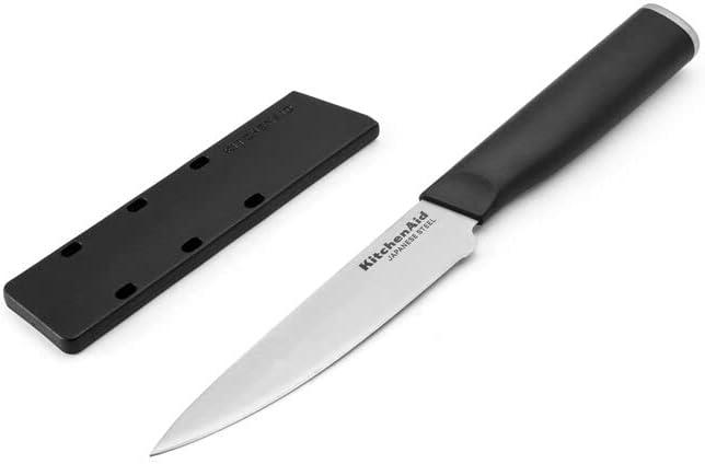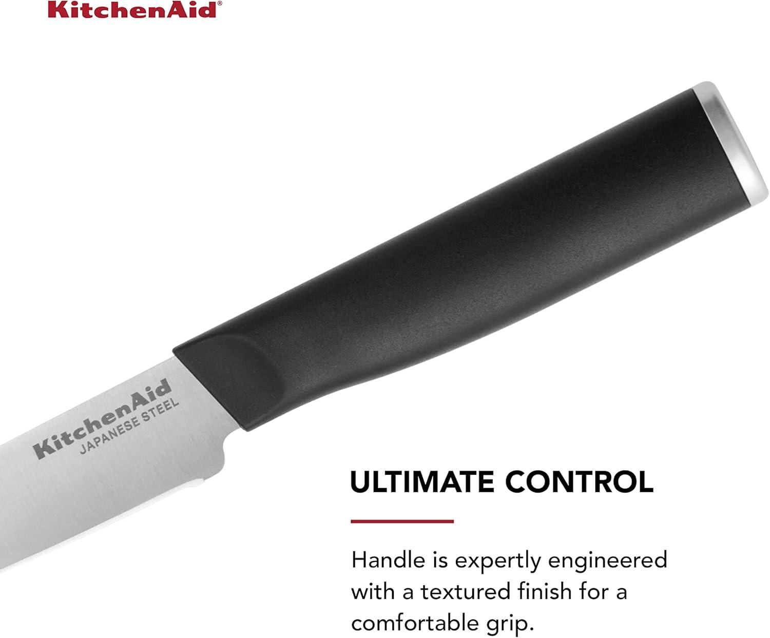 KitchenAid Classic Serrated Bread Knife with Custom-Fit Blade Cover, 8-inch, Sharp Kitchen Knife, High-Carbon Japanese Stainless Steel Blade, Black(4.5″)
