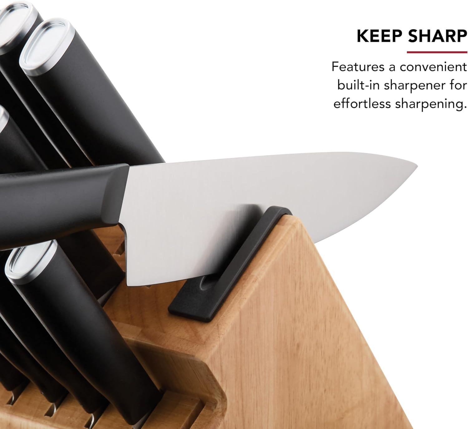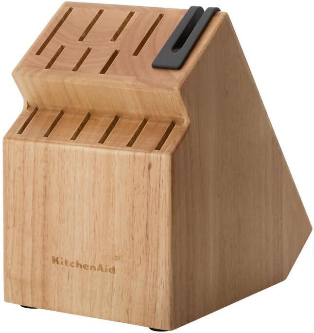 KitchenAid Classic Slim Knife Block Set with Built-In Knife Sharpener, High Carbon Stainless Steel Kitchen Knives, Sharp Kitchen Knife Set with Block, 14-Piece, White(Natural)