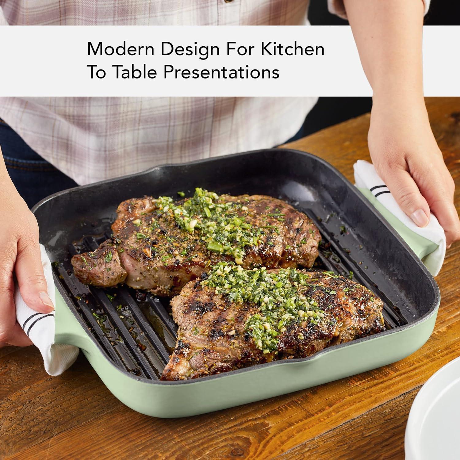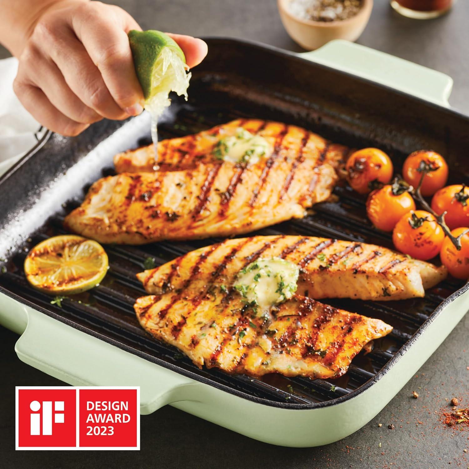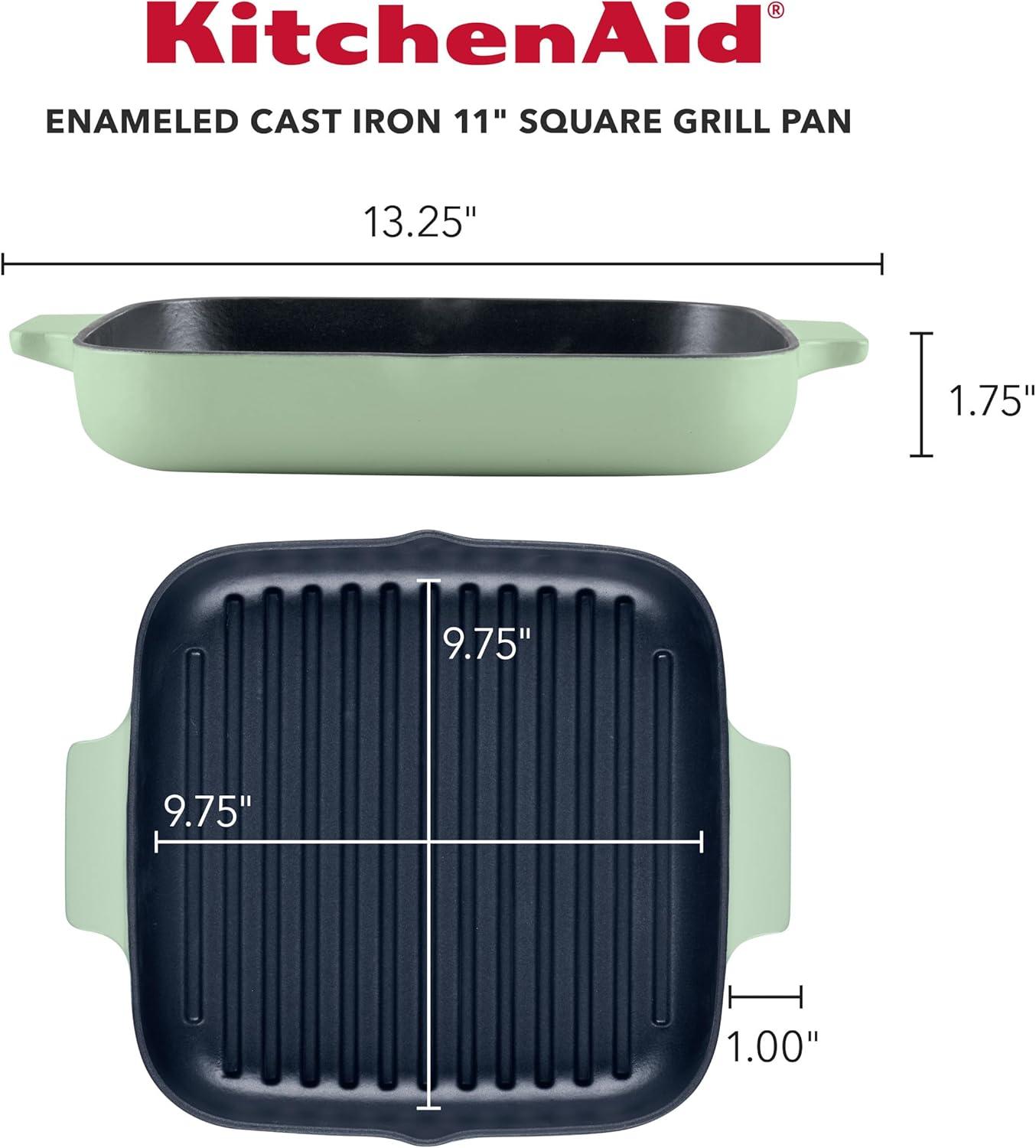 KitchenAid Enameled Cast Iron Square Grill and Roasting Pan, 11 Inch – Pistachio(Pistachio)