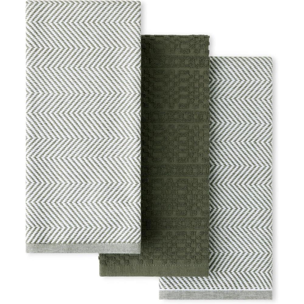 KitchenAid® Evergreen Design Series Heavyweight Textured Oversized Kitchen Towels 3-Pack Set, Absorbent 100% Cotton, Dual-Purpose, Deep Forest Green, 18″x28″