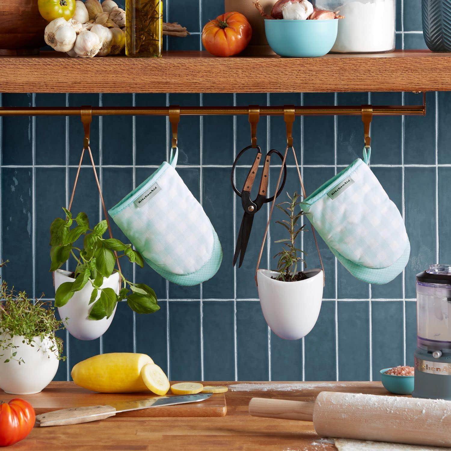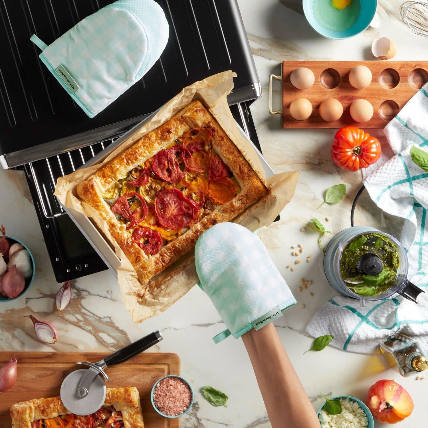 SET OF TWO: Set includes two (2) KitchenAid Gingham Mini Mitts with a classic checkered pattern, each measuring 5.5″ W x 8″ L.