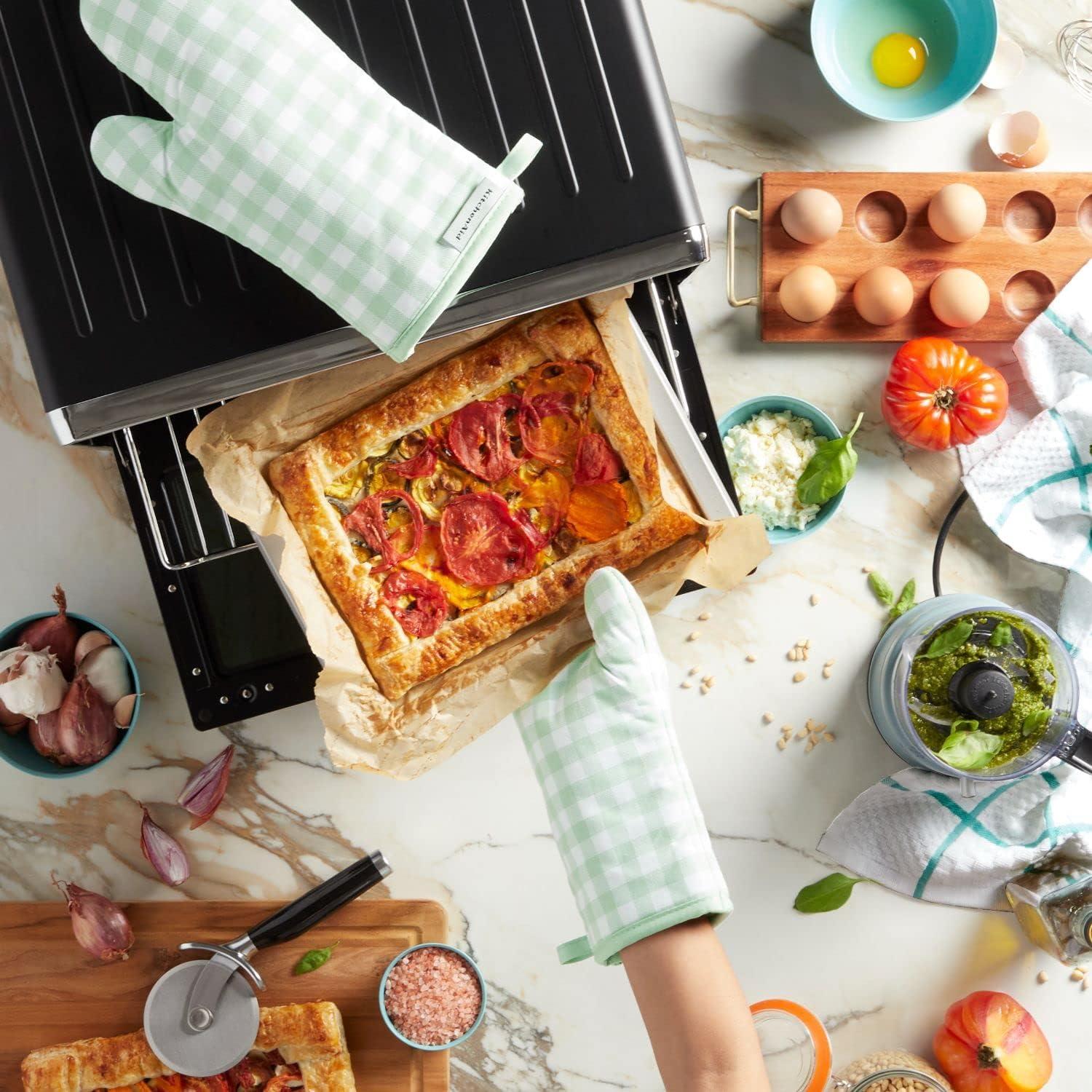 KitchenAid Gingham Oven Mitt 2-Pack Set, Aqua Sky, 7″x13″(Pistachio)