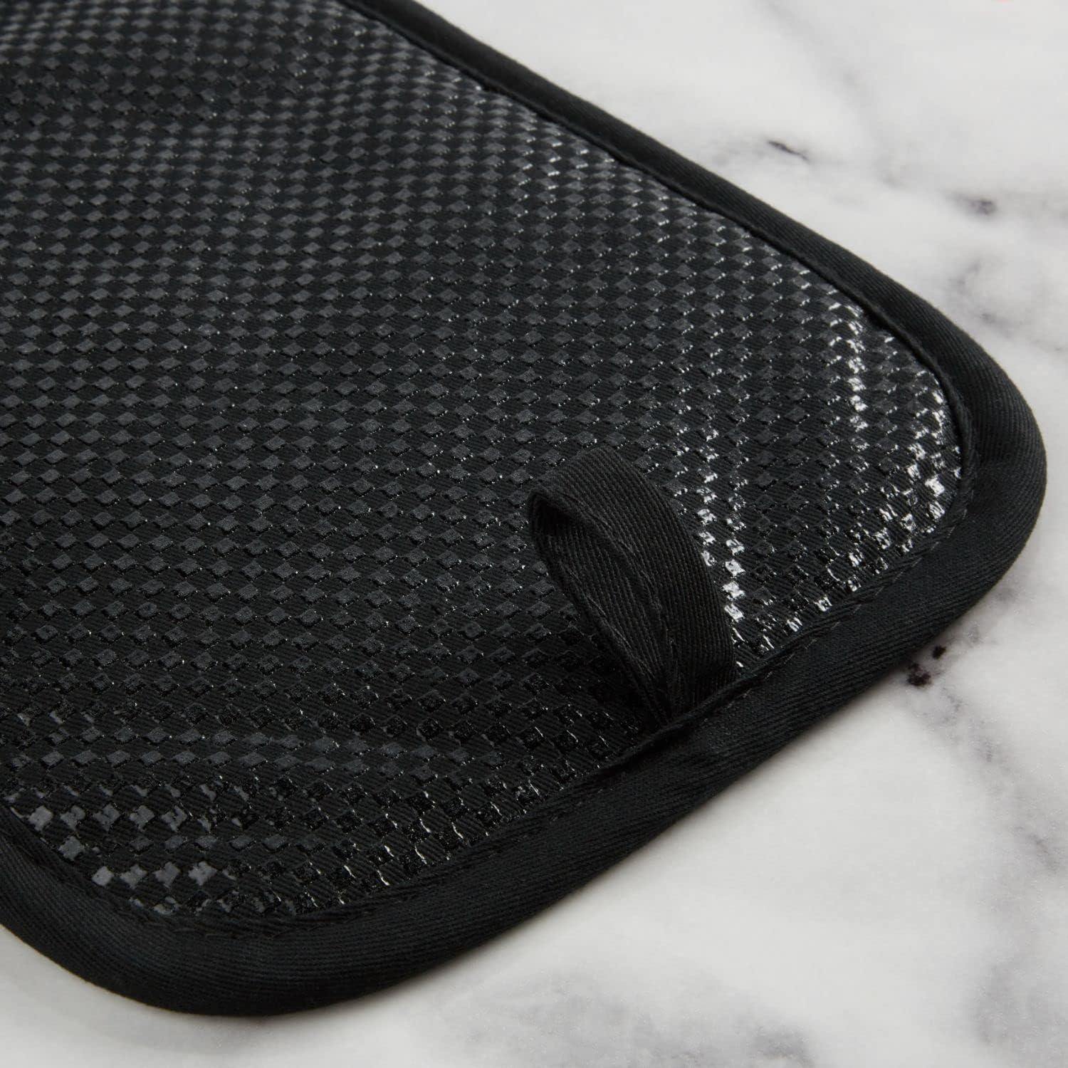 SLIP-RESISTANT: Features clear printed silicone to ensure a firm and secure hold when handling hot pots and dishes.