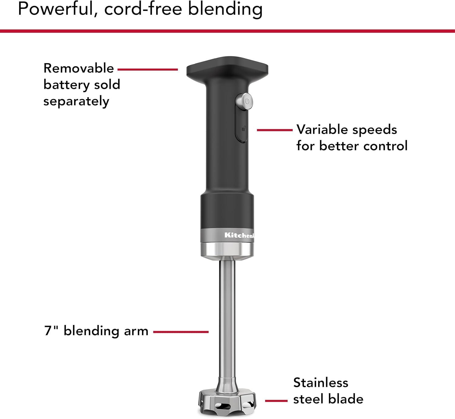 KitchenAid Go Cordless Hand Blender – battery included, KHBRV71, Porcelain White(Black Matte)