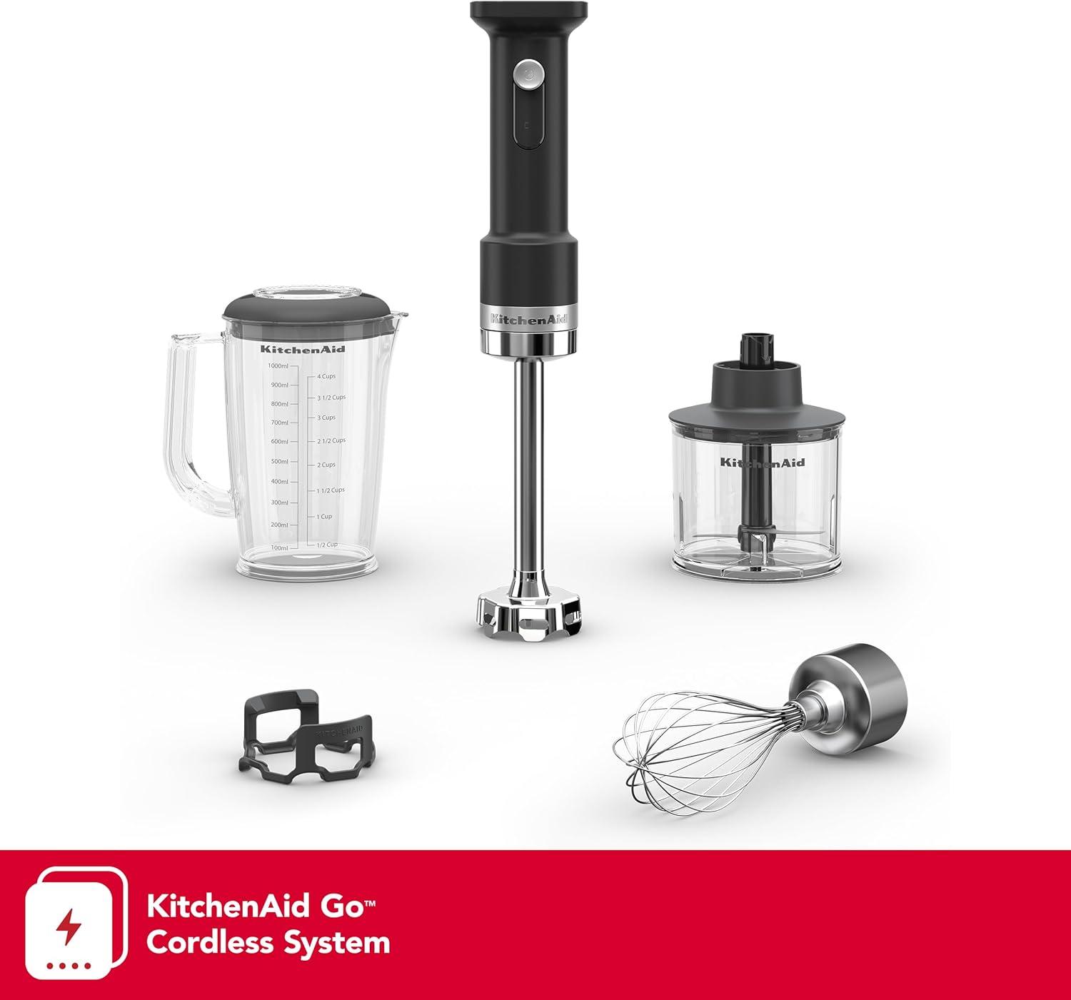 KitchenAid Go Cordless Hand Blender with Accessories – battery sold separately, KHBRV05, Porcelain White(Matte Black)