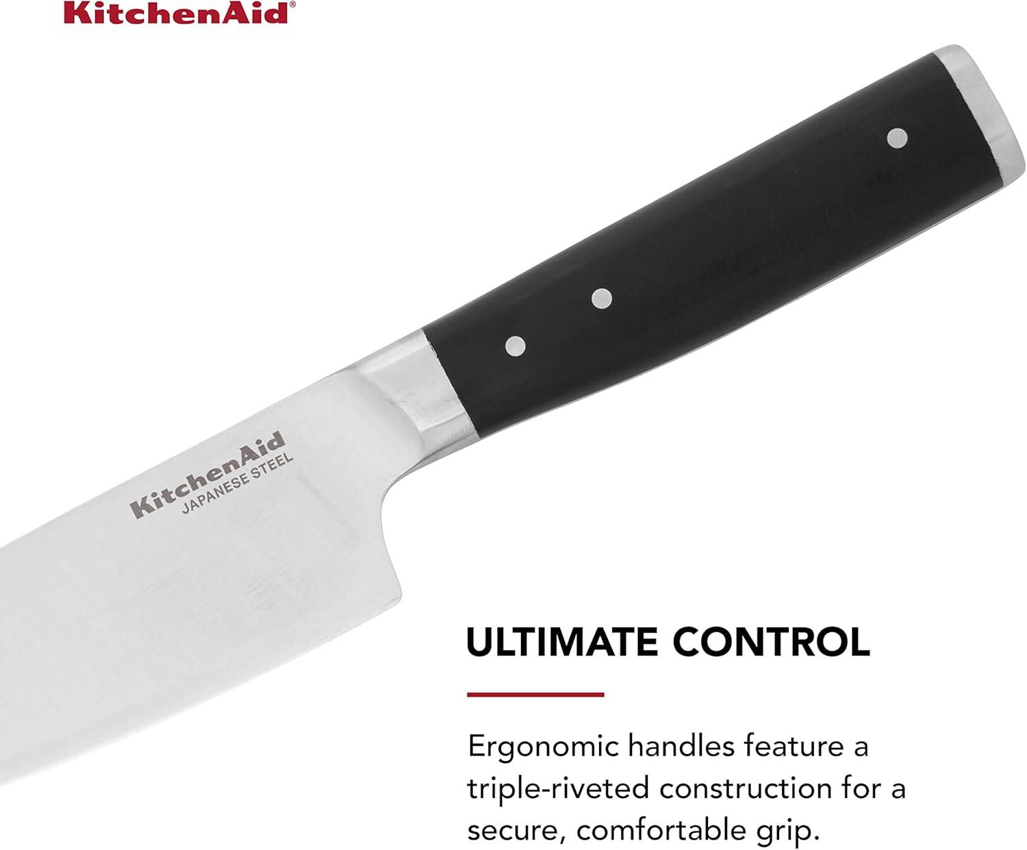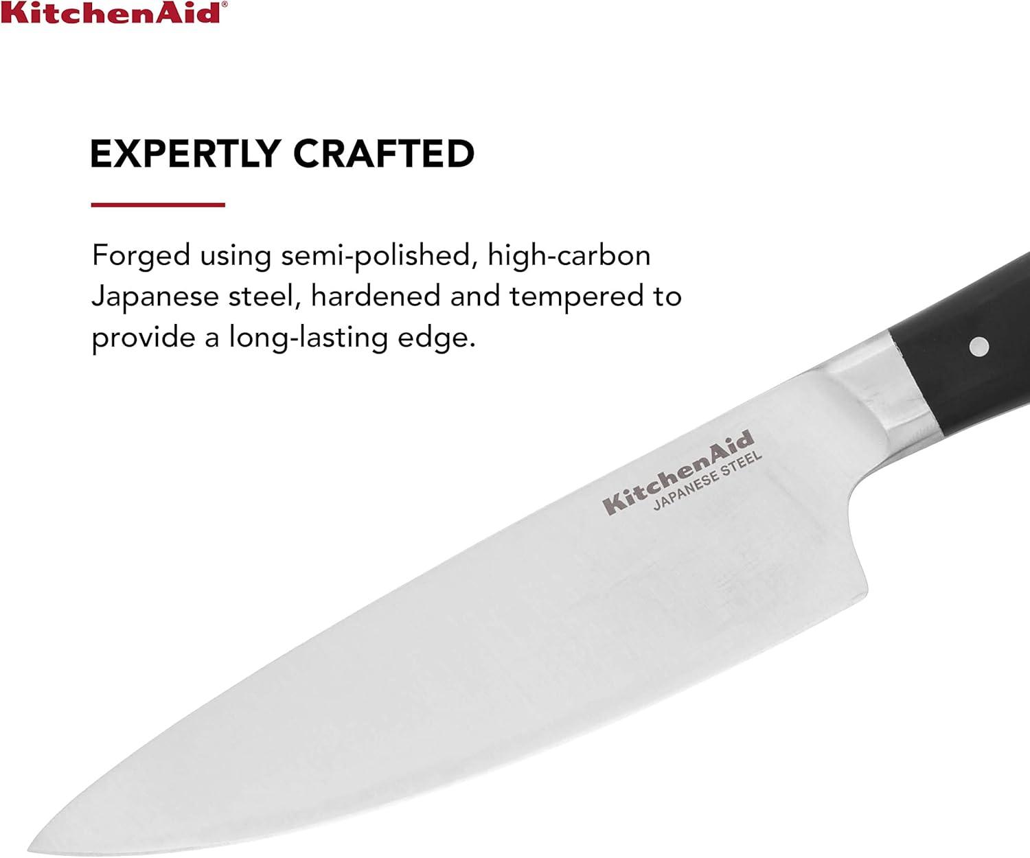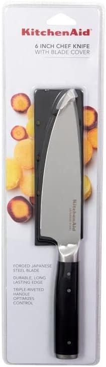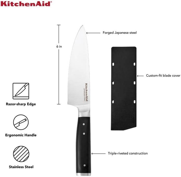 KitchenAid Gourmet Forged Triple Rivet Bread Knife with Custom-Fit Blade Cover, 5-inch, Sharp Kitchen Knife, High-Carbon Japanese Stainless Steel Blade, Black(6″)