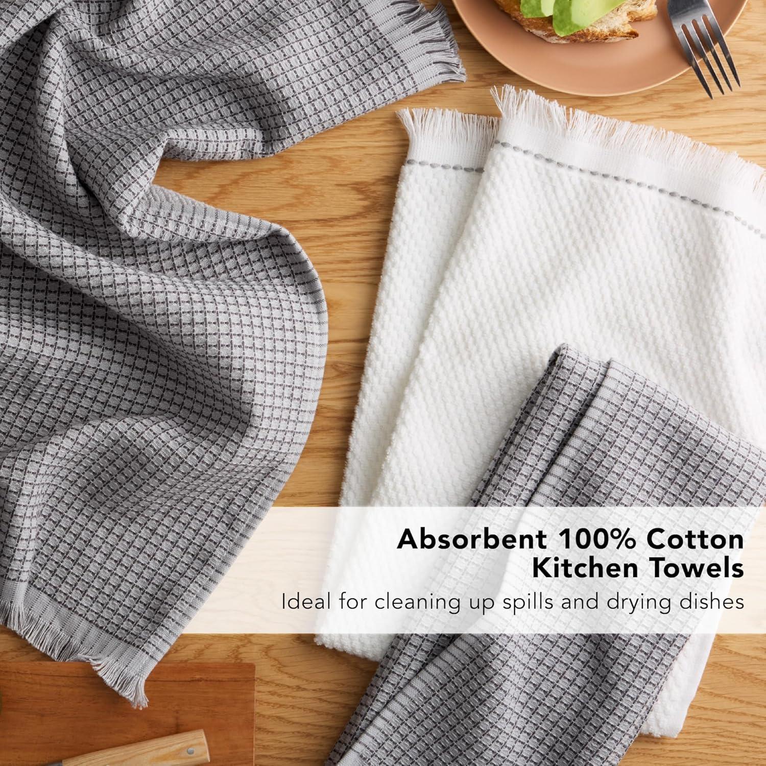 100% Cotton Kitchen Towels: made of thick cotton with waffle-texture design, these kitchen towels are absorbent and durable for continued use