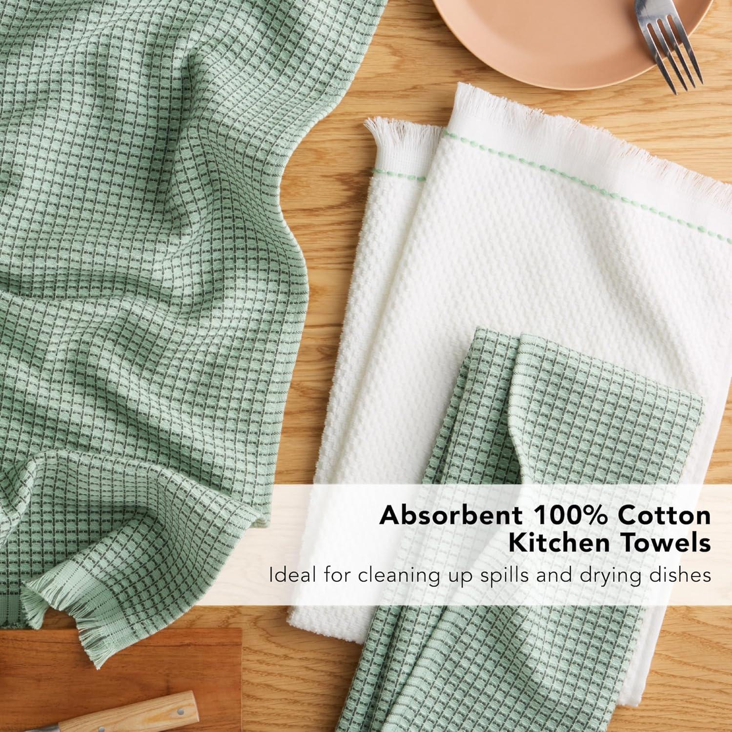 KitchenAid Gourmet Series Gridlines Kitchen Towels 3-Pack Set, 100% Cotton Absorbent, Dried Rose, 18″x28″(Pistachio Green)