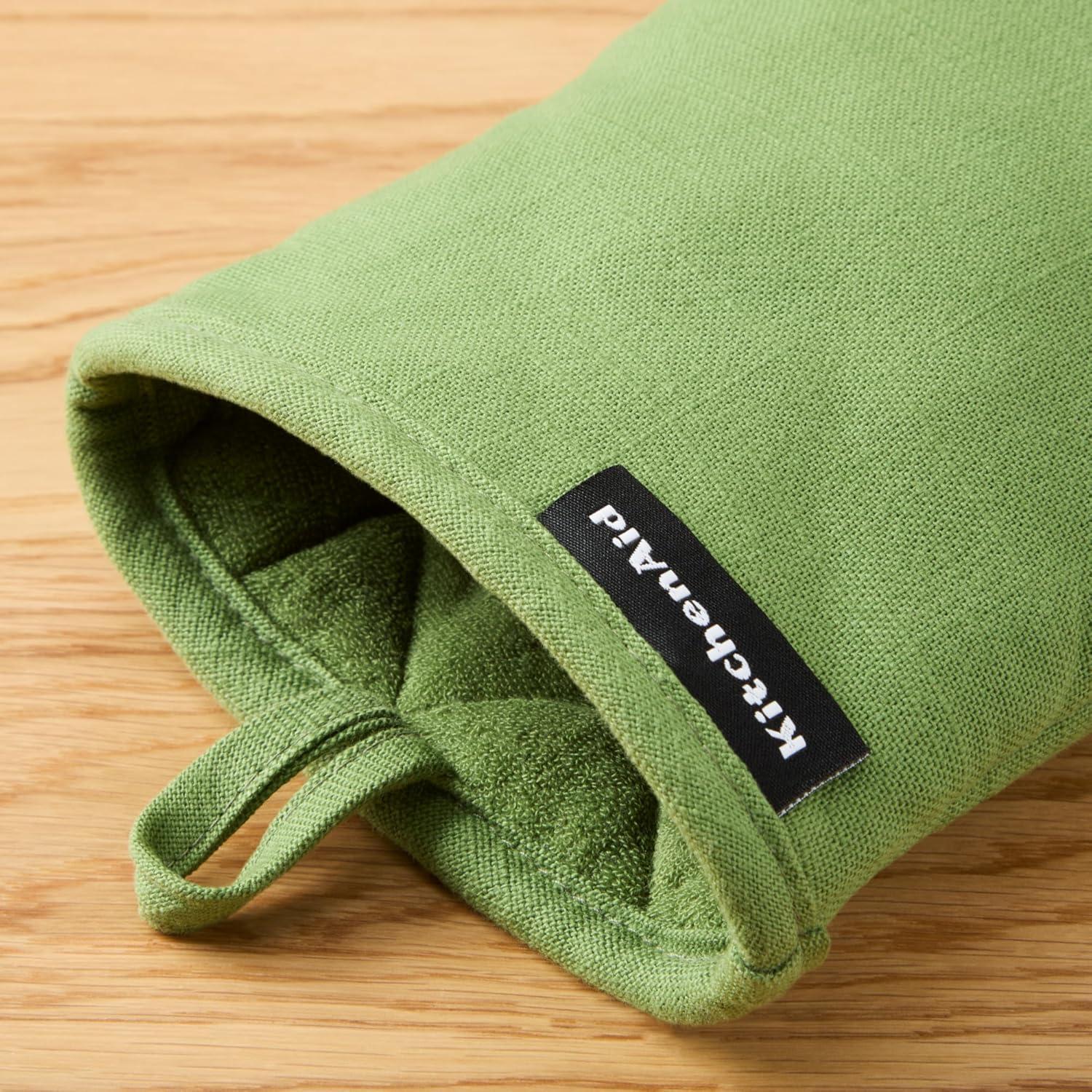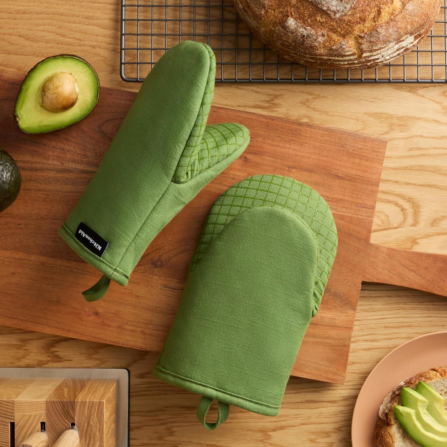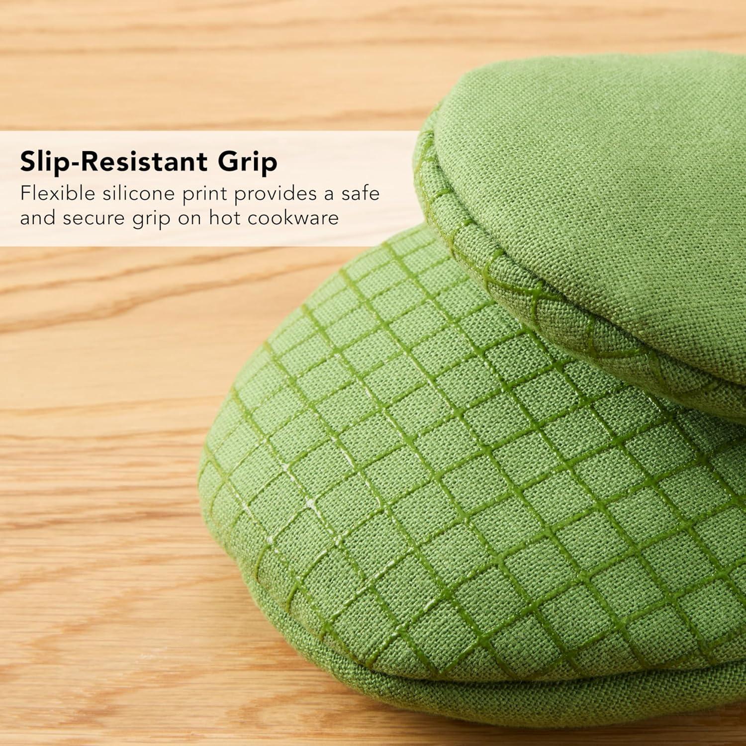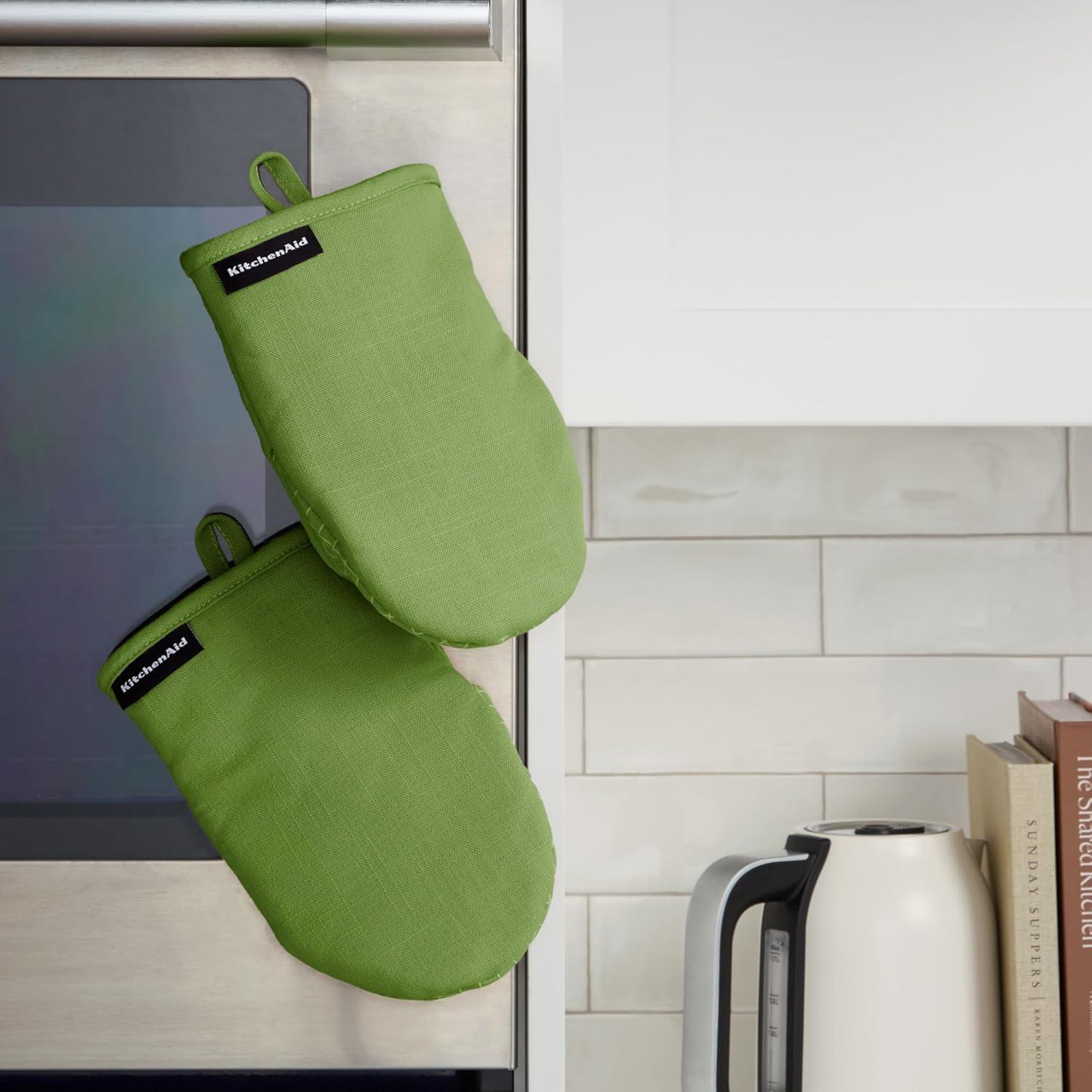 KITCHENAID Gourmet Series Gridlines Mini Oven Mitts 2-Pack Set, Heat Resistant up to 600°F, Soft Silicone Grip, Magnetic Cuff, Dried Rose, 5.5″x9″(Matcha Green)