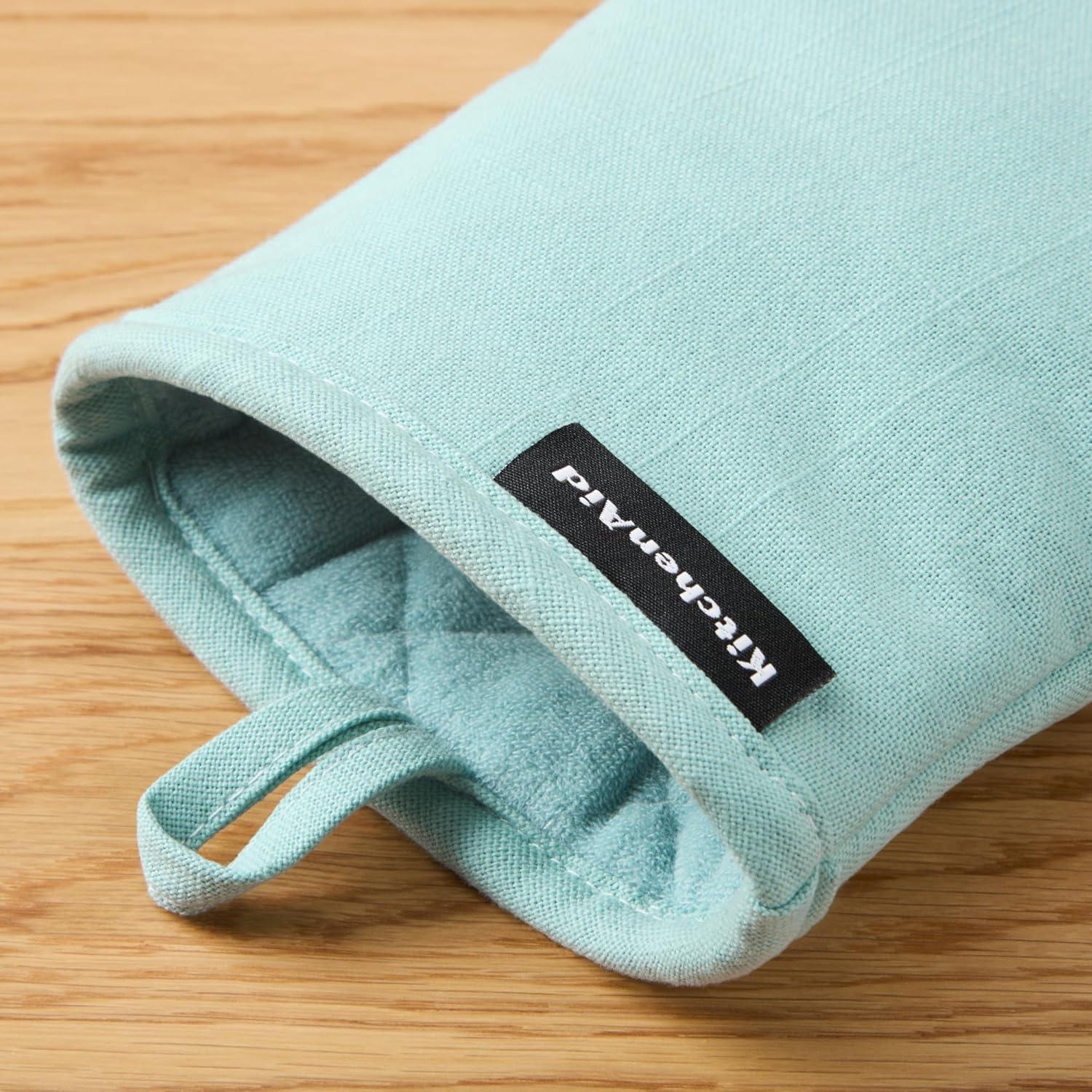 KITCHENAID Gourmet Series Gridlines Mini Oven Mitts 2-Pack Set, Heat Resistant up to 600°F, Soft Silicone Grip, Magnetic Cuff, Dried Rose, 5.5″x9″(Mineral Water Aqua)