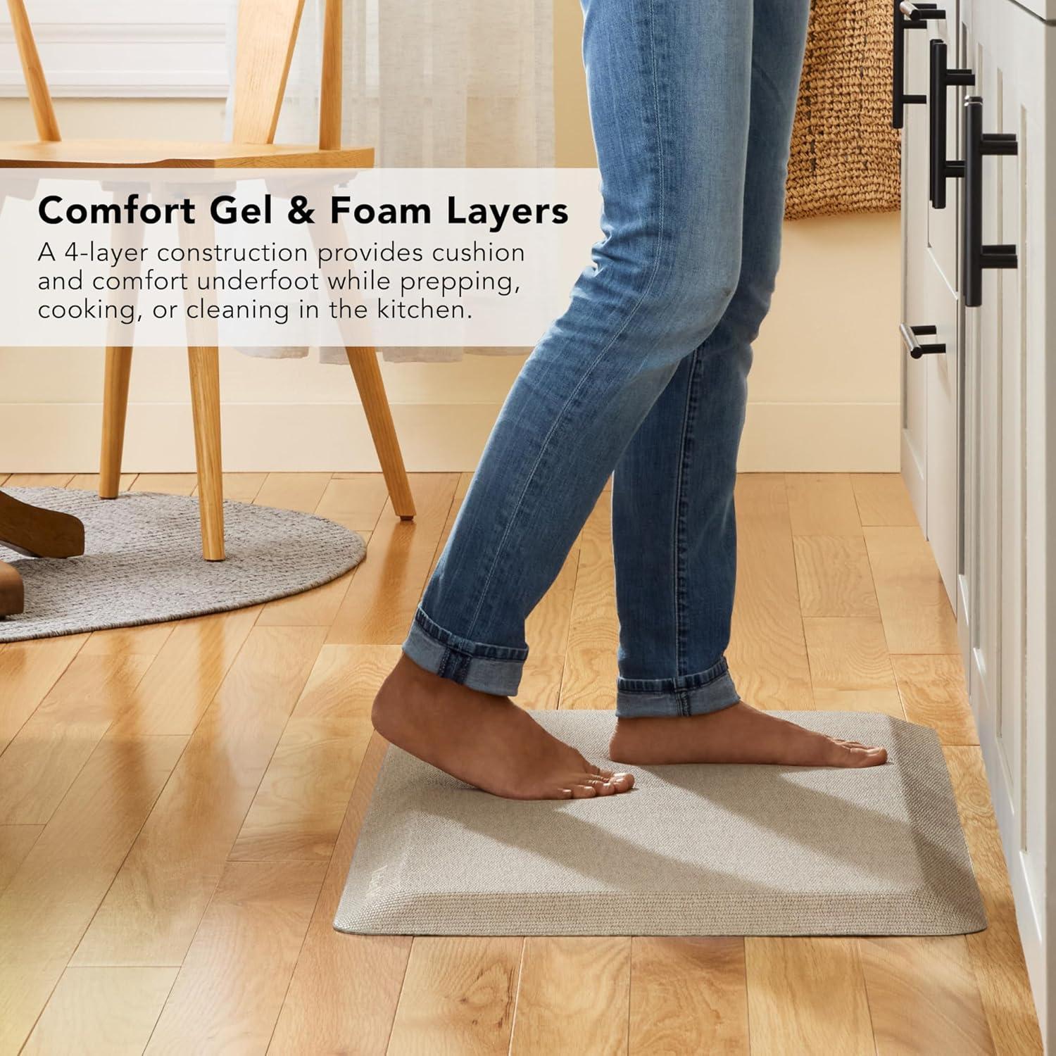 Add a dose of comfort and style with the KitchenAid Gourmet Series Kitchen Comfort Gel Mat. With a 4-layer construction, this mat provides cushion and support underfoot while you prep, cook and clean in the kitchen. With a water and stain-resistant top for easy cleaning, a soft gel layer, a thick foam core, and a non-slip bottom, this kitchen mat provides cushioning and support for feet and legs, making it perfect for standing on hard floors. Enhanced with beveled edges for a smooth floor transition, this comfort mat is ideal for any kitchen. Coordinate with your KitchenAid kitchen textiles and appliances for a cohesive look.