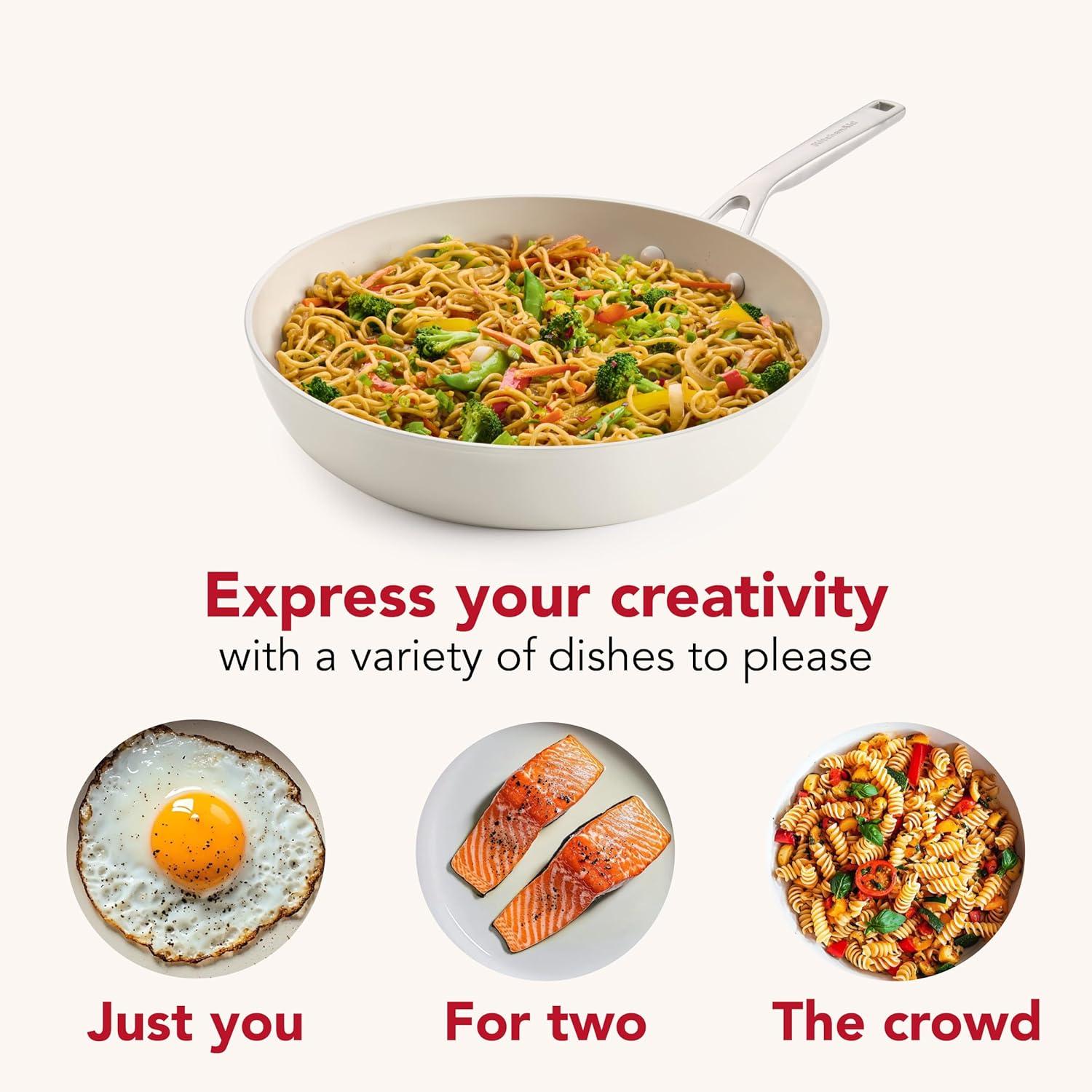Elevate everyday cooking with the KitchenAid 9-Piece Hard-Anodized Ceramic Induction Cookware Set, where contemporary style meets incredible nonstick performance—made without PFAS*. Cook healthier with durable ceramic nonstick, which is designed to release foods easily, requiring less oil to keep food from sticking. The pots and pans in this set are 8x stronger than standard aluminum, ensuring exceptional durability and heat conduction. Induction-ready performance, shatter-resistant glass lids, and double-riveted stainless steel handles add convenience, confidence, and control. Designed for effortless stovetop creativity and beautiful kitchen-to-table presentations, this versatile set is here to help you transform meals into authentic moments of connection and inspiration. Oven safe up to 500 degrees F (lids to 350) and dishwasher safe for easy cleanup. *Product design does not involve intentionally adding to the cooking surface any of these substances which may otherwise be present in the environment.