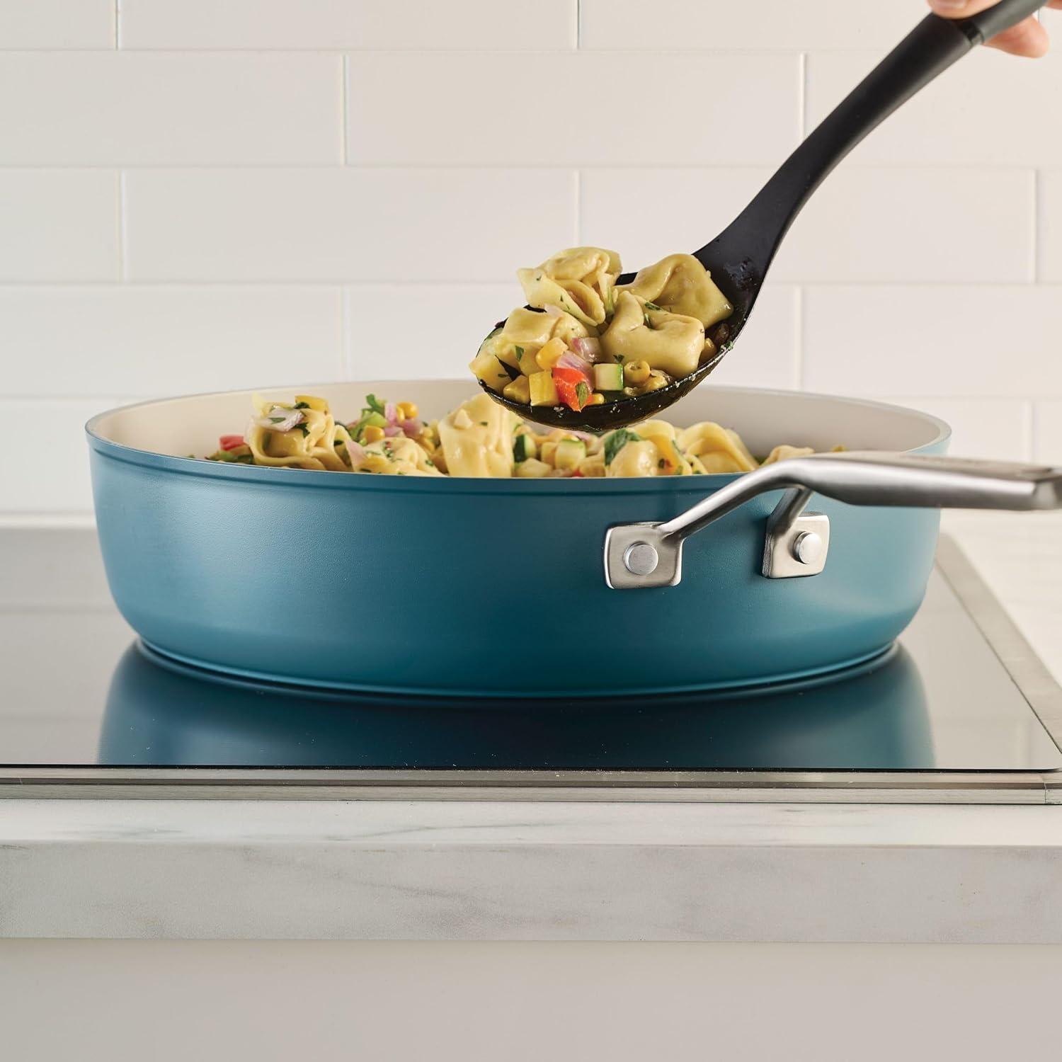 KitchenAid Hard Anodized Ceramic Nonstick Cookware/Pots and Pans Set, 10 Piece – Blue Velvet(Agave)