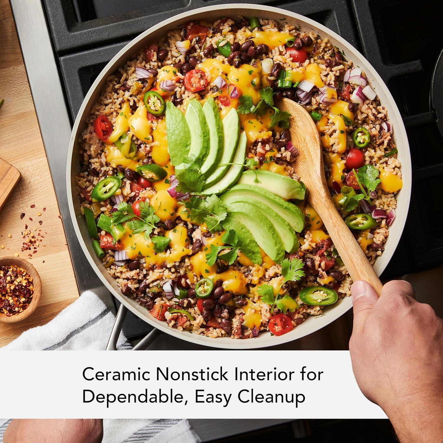EASY-CLEAN CERAMIC: High performance ceramic nonstick is made without PFAS, BPA, Lead, or Cadmium* for safe, consistent food release and fast, easy cleanup (*Manufacturing process does not involve adding to the product any of these substances which may otherwise be present in the environment)