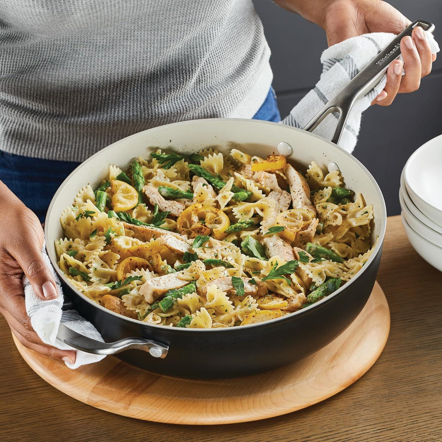 TOUGH, FORGED CONSTRUCTION: Hard anodized ceramic nonstick sauté pan from KitchenAid is 8x harder than aluminum for lasting performance and features a thick, forged base for fast and even heat conduction