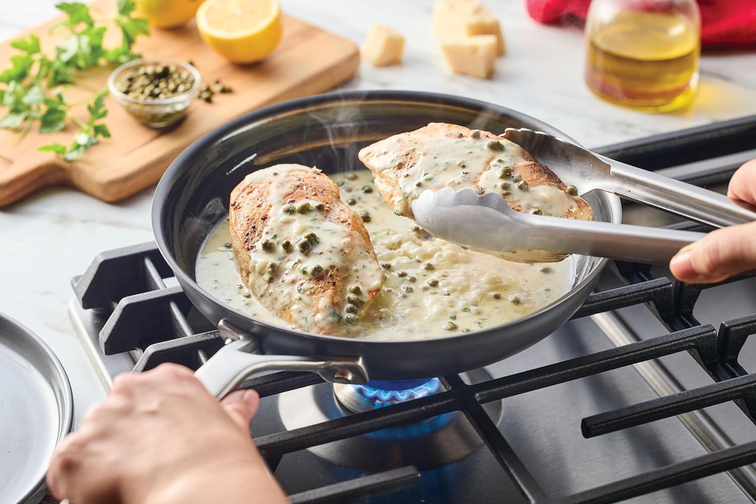 Weeknight dinners have never been easier with KitchenAid NITRO Carbon Steel, the ultimate kitchen workhorse. This do-it-all cookware offers the exceptional searing and timeless performance of cast iron, but with lightweight, anti-rust convenience, making it the perfect go-to pan to elevate weeknight meals. Made with innovative nitro heat technology to seal the surface of the pan and lock out moisture, this durable 8.5-inch skillet is rust resistant and 22 percent harder than traditional carbon steel as well as completely metal-utensil safe. Similar to cast iron, carbon steel can also be seasoned to develop a nonstick-like cooking surface over time. Heat safe to 750°F and induction suitable, this pan offers culinary perfection from stove to oven to grill.