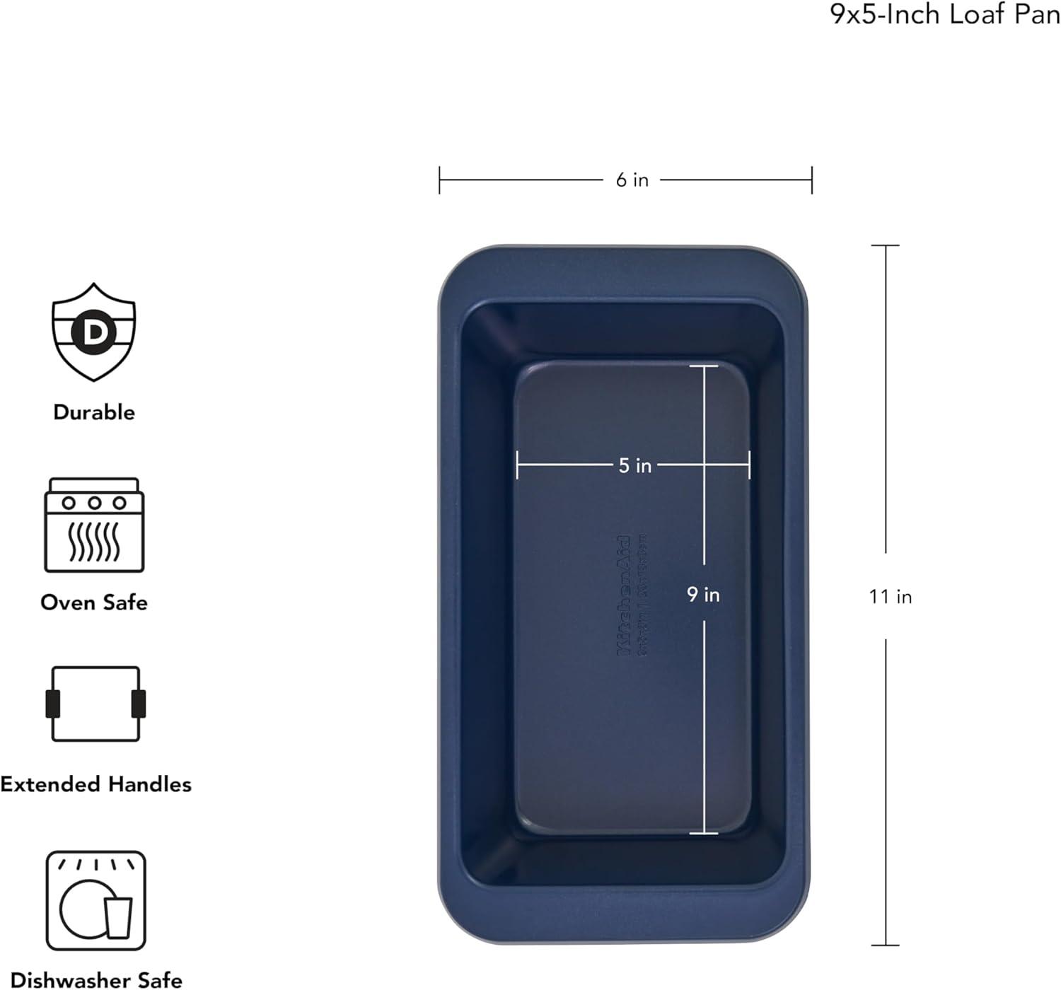 KitchenAid Nonstick Swiss Engineered Aluminized Steel Loaf Pan, Dishwasher Safe, 9 x 5 Inch, Mineral Water(Ink Blue)