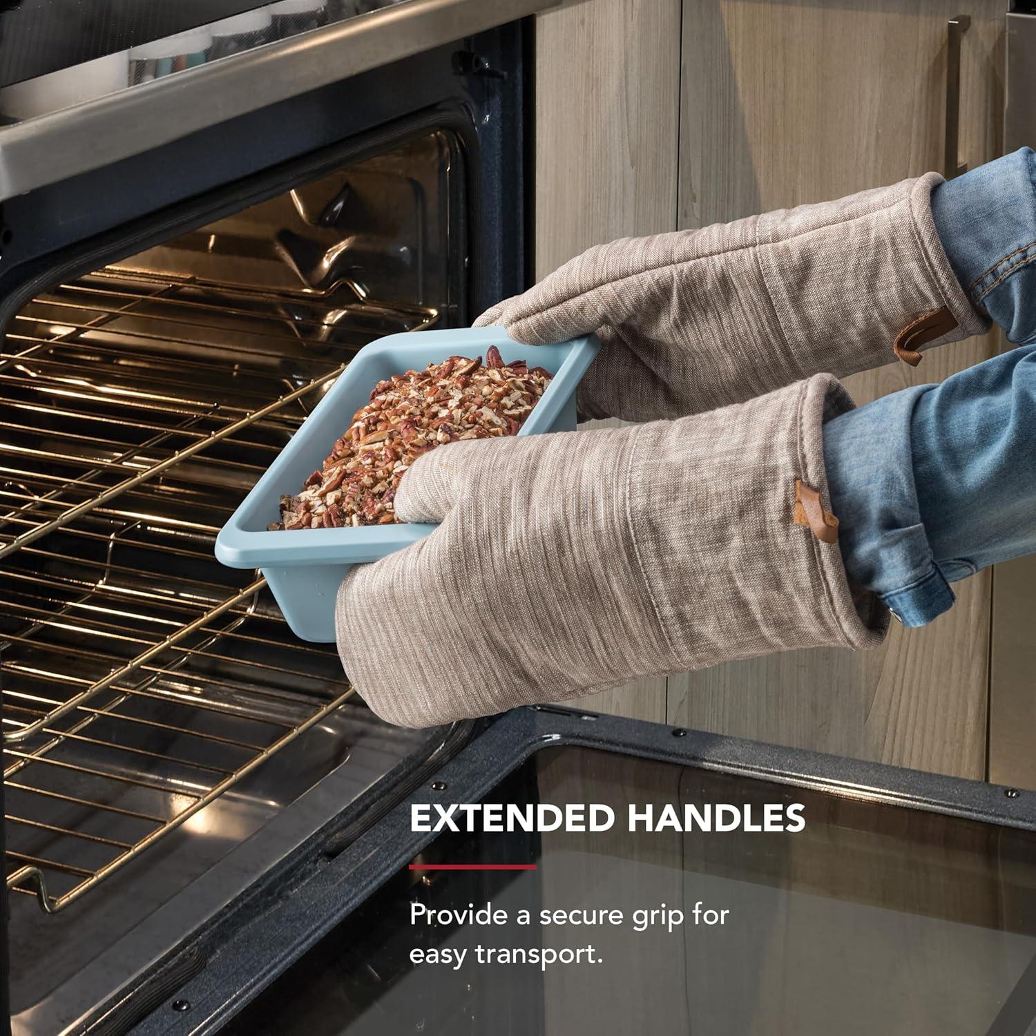 EXTENDED HANDLES: provide a secure grip for easy transport, making transferring pan in and out of the oven safer and simpler, even when wearing pot holders