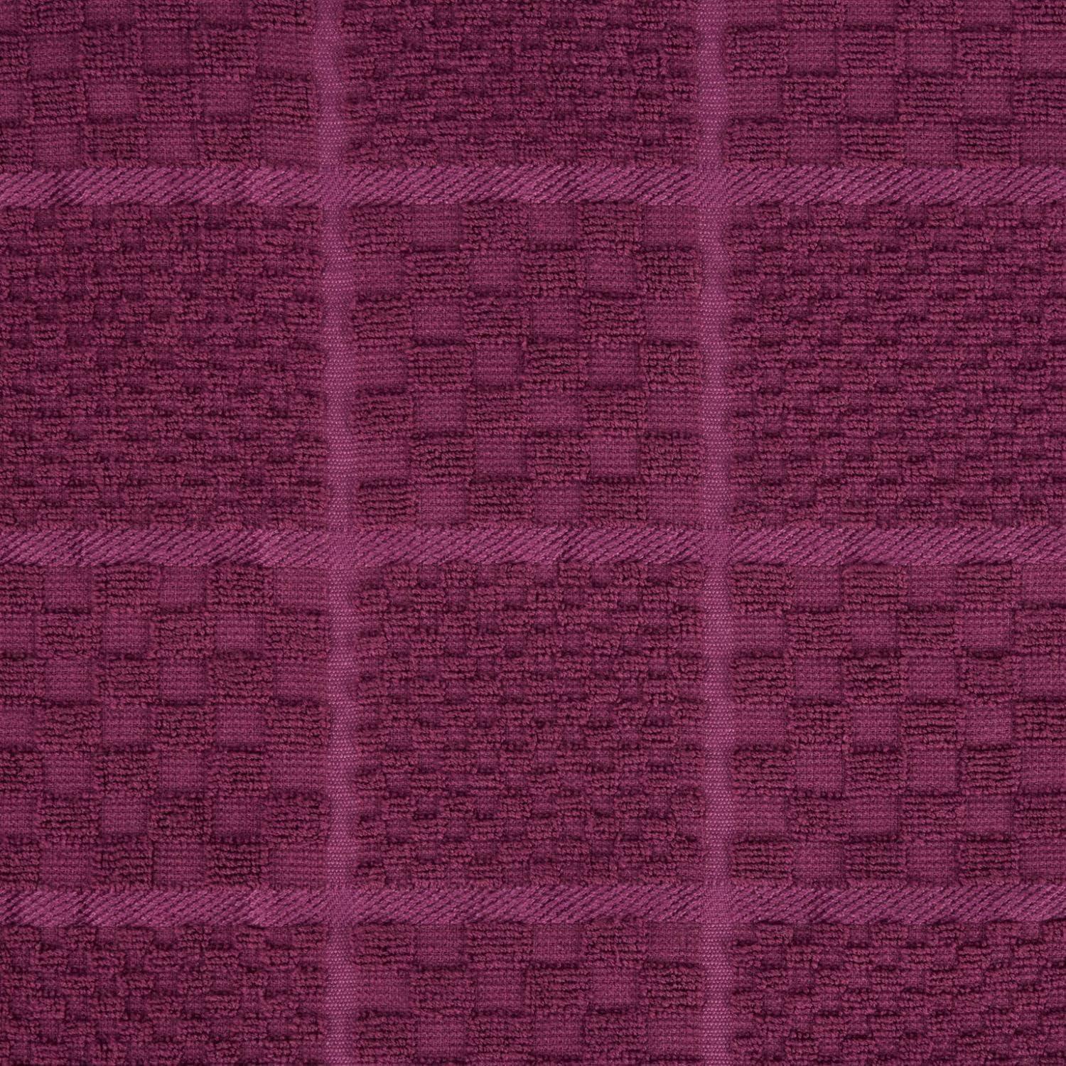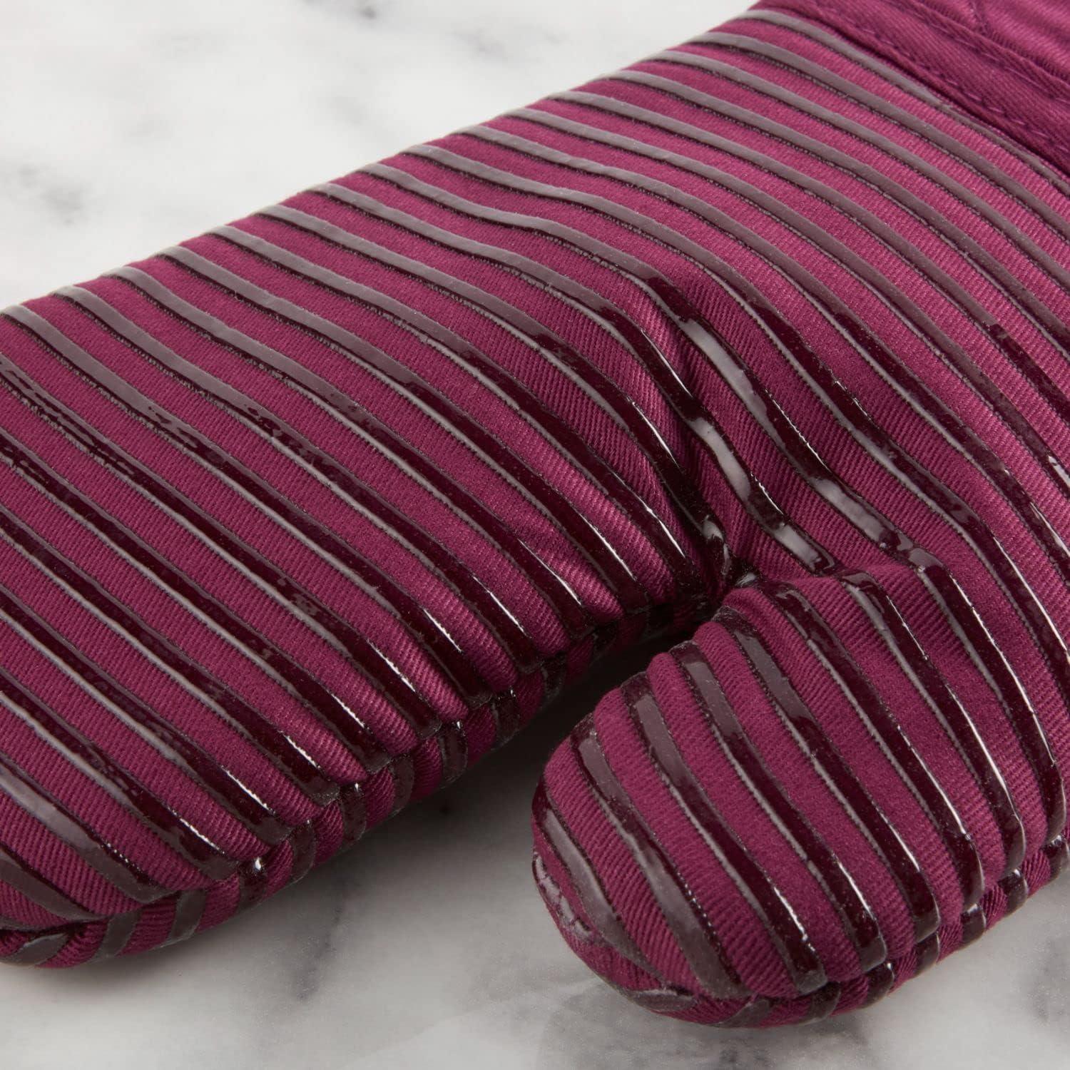 Set includes two absorbent, textured terrycloth kitchen towels, one dual-layered quilted pot holder, and one dual-layered oven mitt with a non-slip silicone grip and high heat resistance