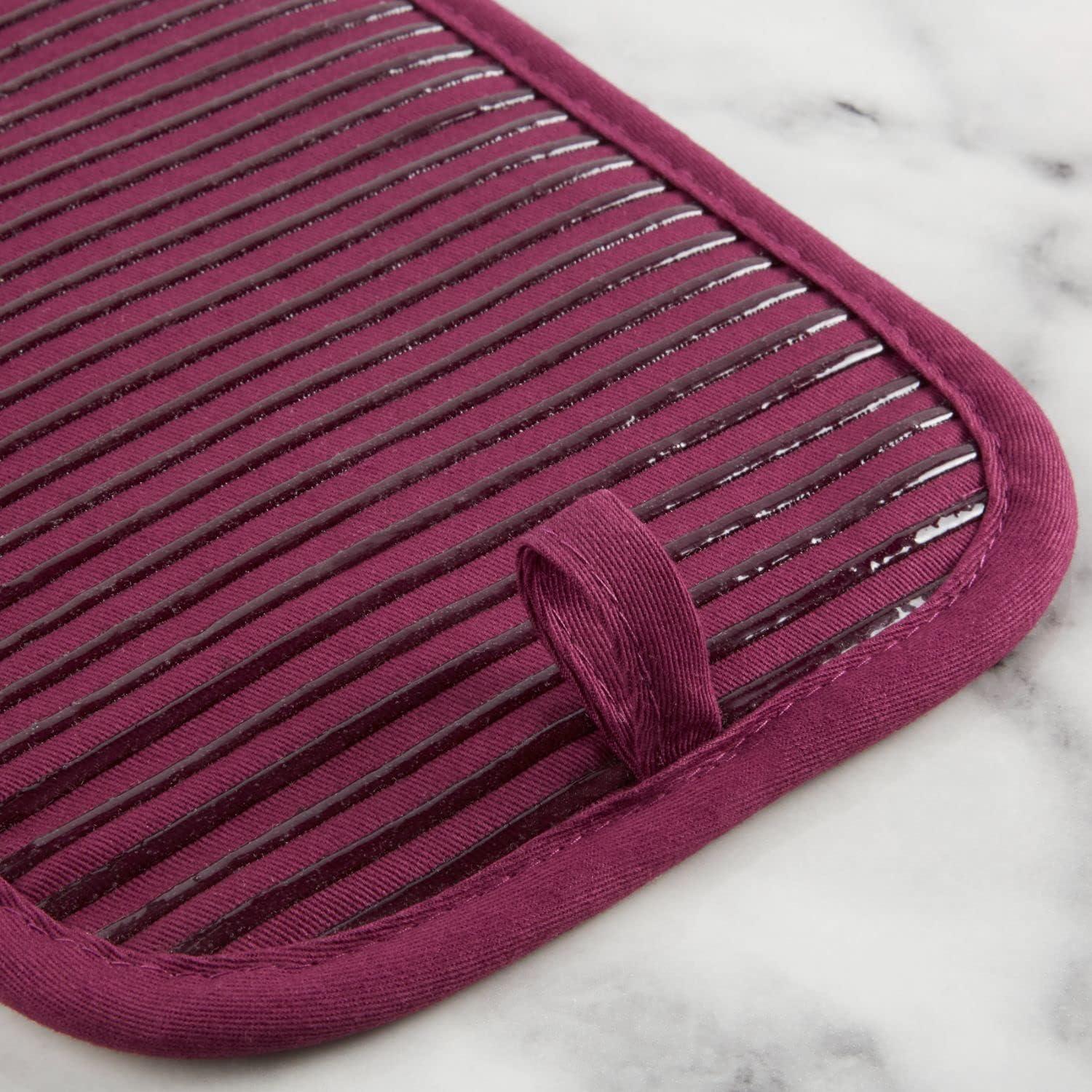 Made of insulated, heat resistant cotton, this oven mitt and pot holder set protects hands, forearms, and countertops from heat while cooking and baking