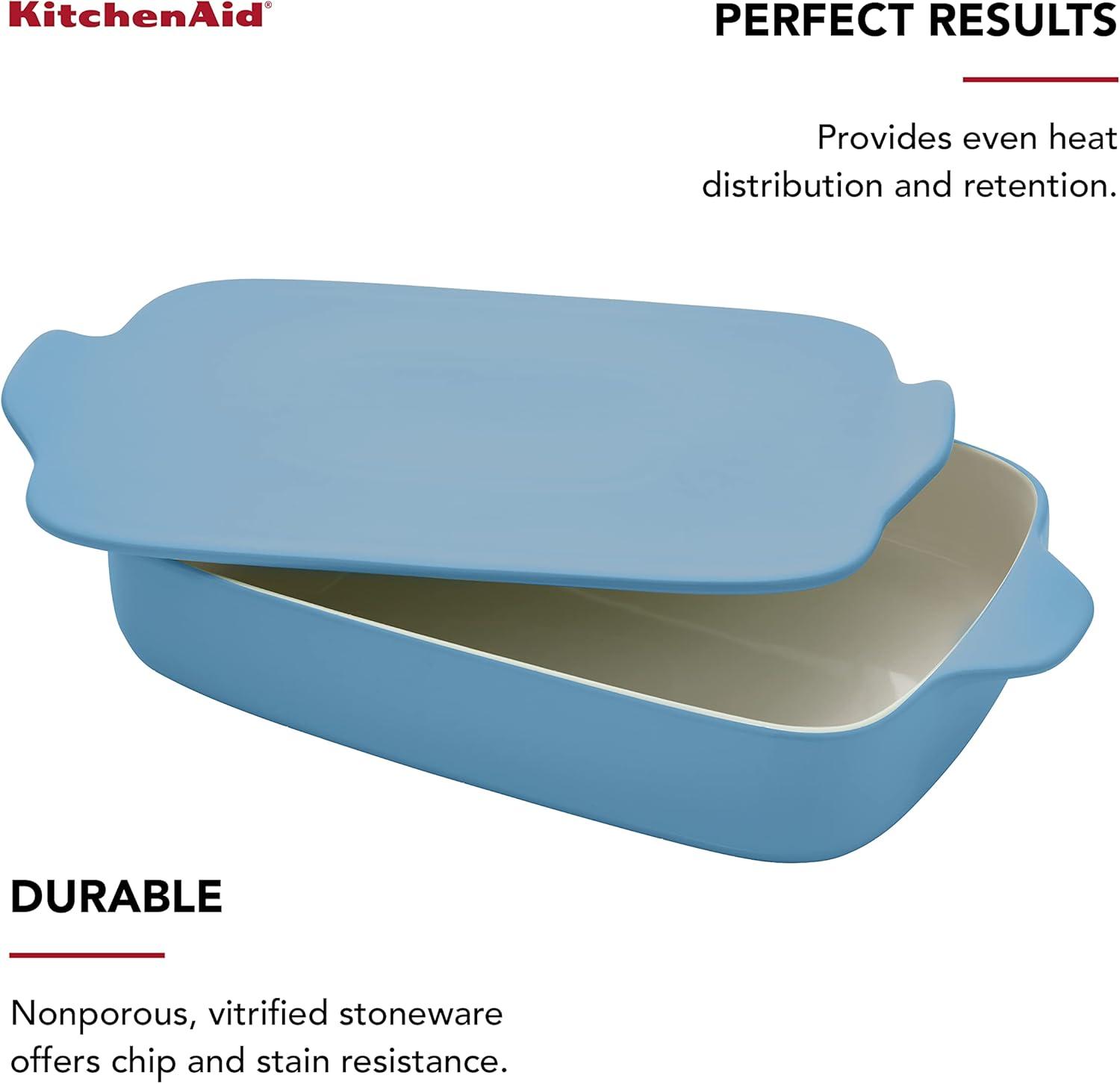 KitchenAid Rectangular Baker with Lid Vitrified Stoneware, 9in 13in 2.5in, Blue Velvet(Blue Velvet)