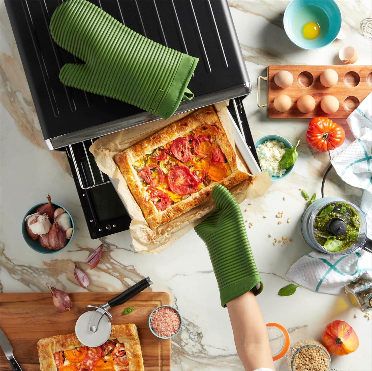 DURABLE, HEAT RESISTANT SILICONE – The KitchenAidRibbed Soft Silicone mitts are heat resistant up to 500 degrees Fahrenheit to safely shield hands from the heat while cooking and handling hot pans and dishes.