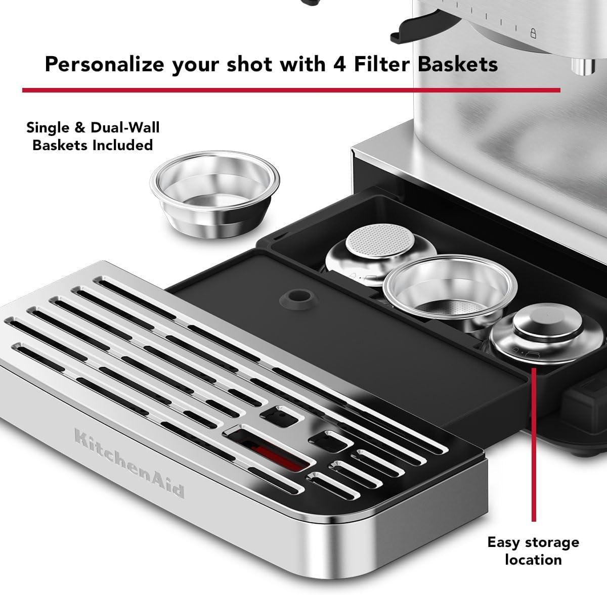 KitchenAid Semi Automatic Espresso Machine with Burr Grinder, 2.5L, Juniper, KES6551JP(Brushed Stainless Steel)