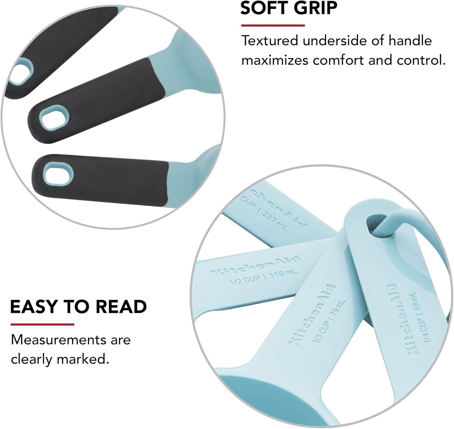 KitchenAid Universal Easy To Read Measuring Cup and Spoon Set with Soft Grip Handle for Maximum Control, Hang Hole and Nesting For Easy Storage, Dishwasher Safe, 9 Piece, Lavender Cream(Mineral Water)